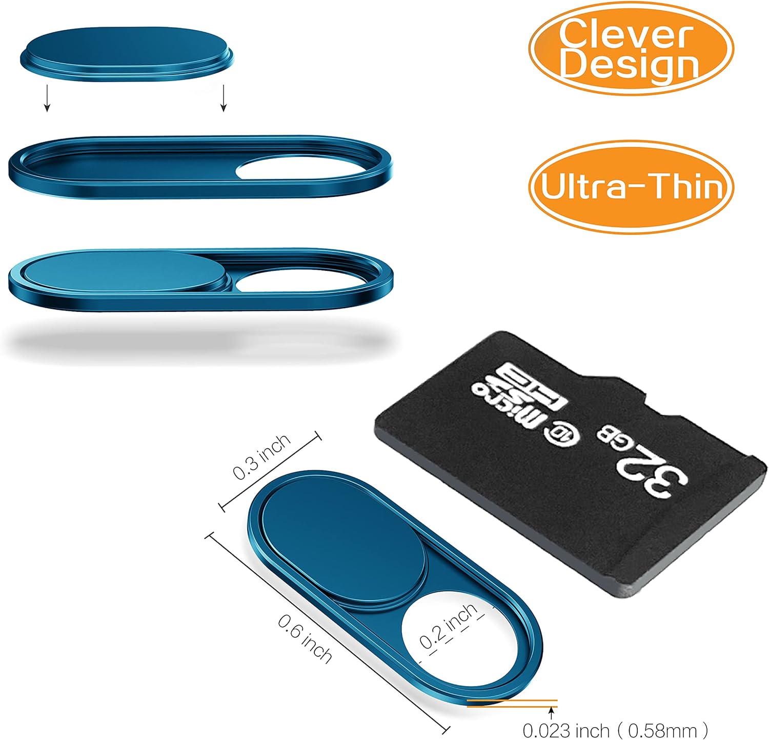 imluckies Metal Webcam Cover Slide, 0.023in Camera Cover for Laptop Computer, MacBook Pro/Air iMac iPad Tablet iPhone 8/7/6 Plus, Echo Show/Spot Web Camera Blocker Protect Your Privacy [2 Pack Blue]