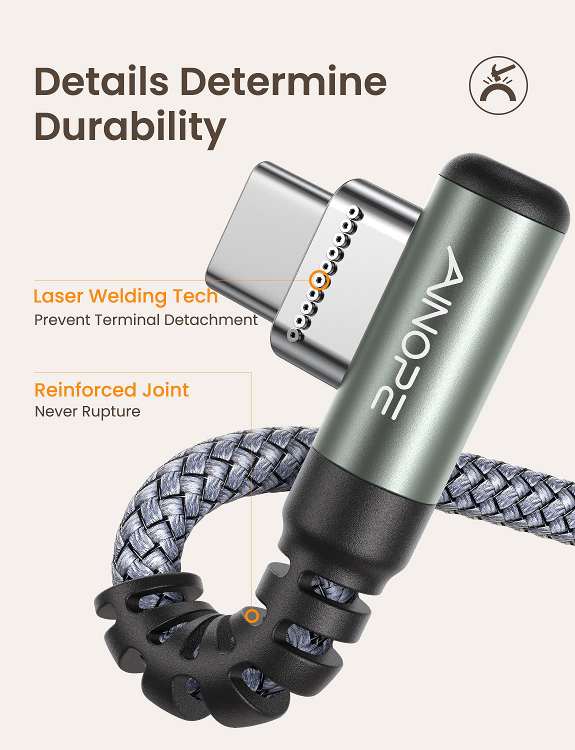 - [Enhanced Cable Durability] USB to USB C Cable has electronic safety certifications that comply with appropriate standards, it built-in laser welding technology, which ensure the metal part won't break. The longer SR anti-break design enhances the durability of the cable. With 40,000+ times bend test, the flexible and durable double-braided nylon type C cable longer service life and will never rupture.