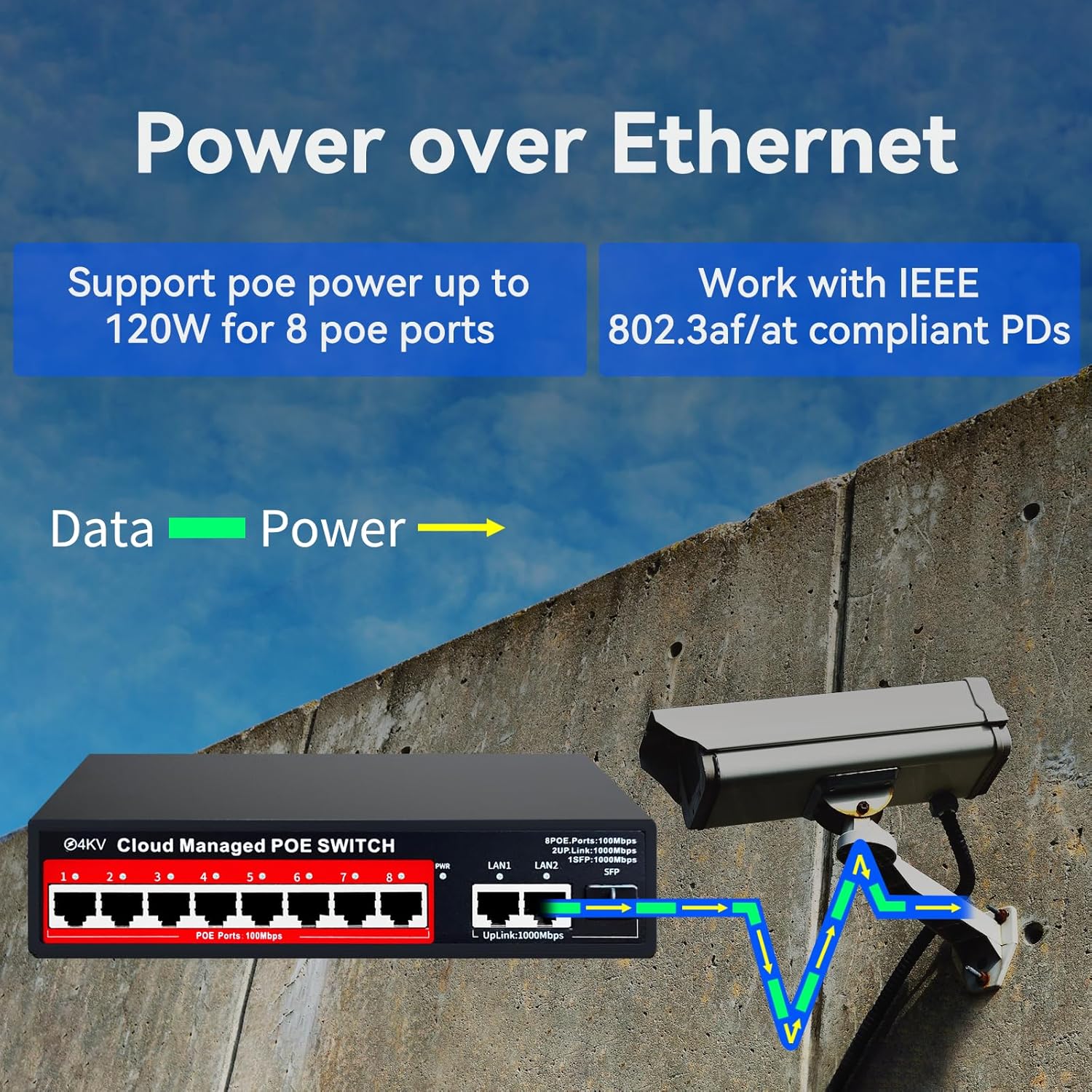 - Stable Power Supply, Efficient Data Transmission: The single-port maximum power of the switch is 30W and 120W of the whole machine. Supporting IEEE802.3af/at network standards, with output power of 15.4W/30W, ideal for PoE Camera, WiFi Access Point, IP Phone.