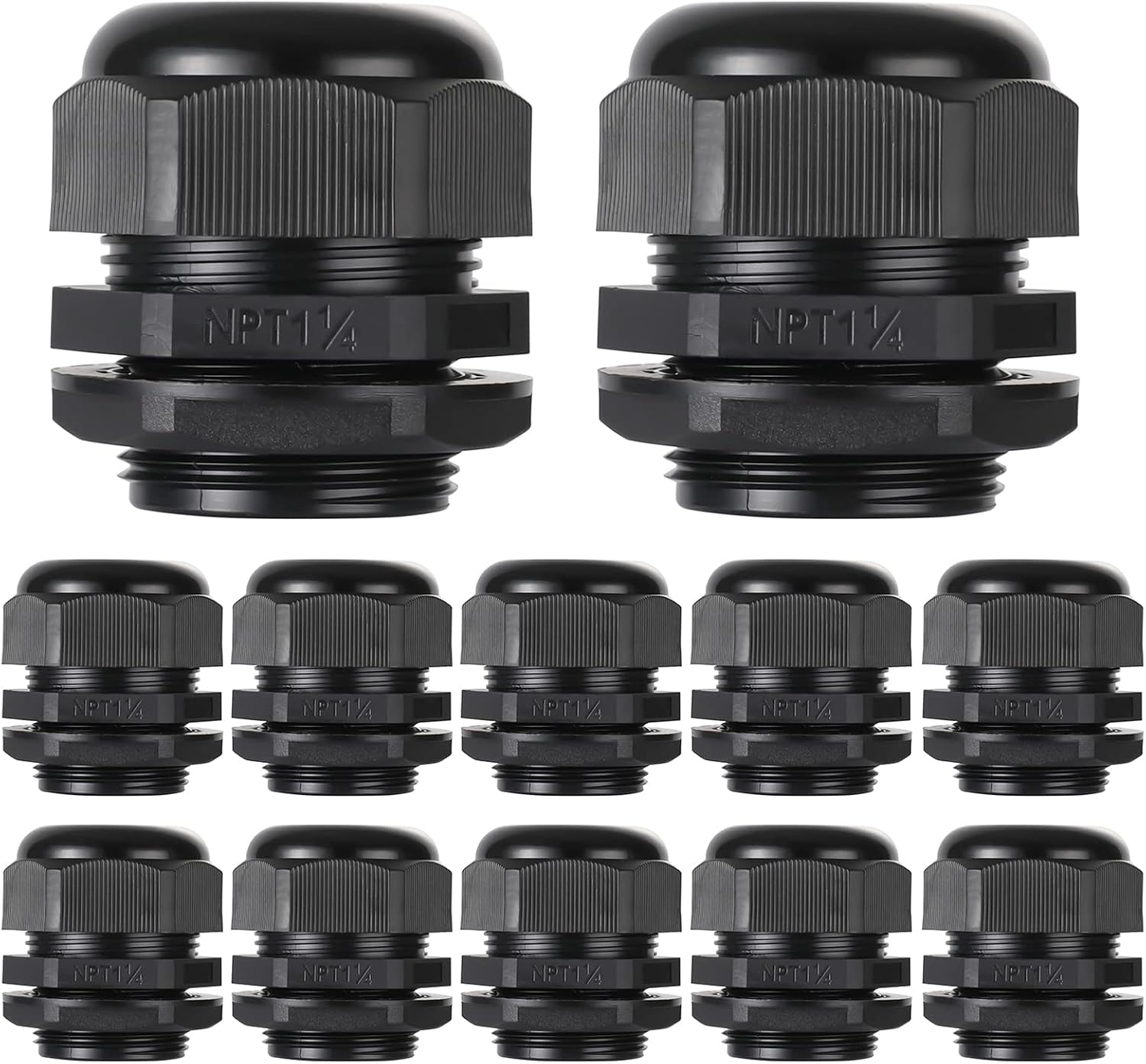 PENGLIN Cable Glands 1-1/4" NPT Nylon Cable Connector, Strain Relief Cord Connector, IP68 Waterproof Adjustable Locknut(1-1/4 Inch (12-Pack))