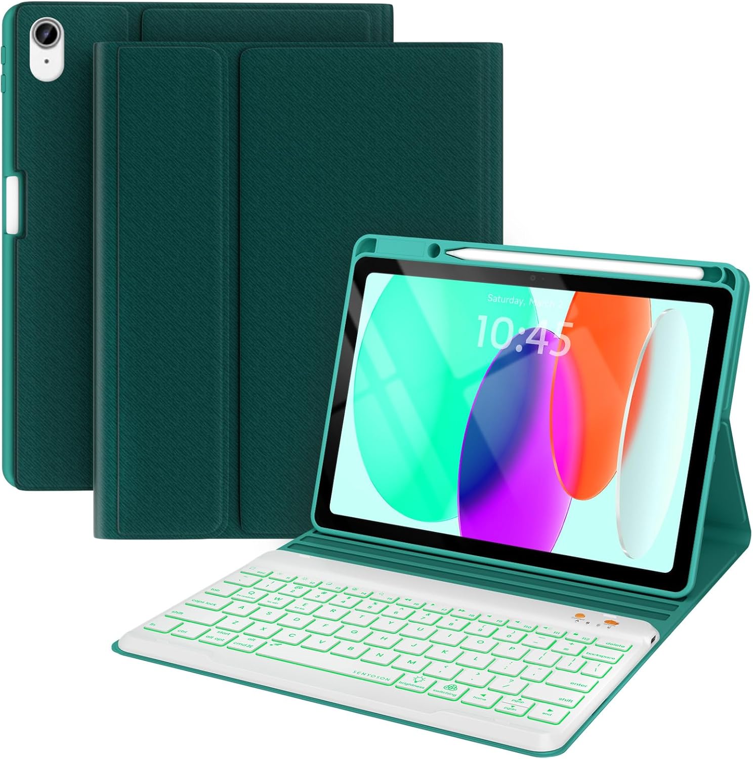 BLUTLOTUS for iPad 11th A16 10th Generation Case with Keyboard - 7 Colors Backlit Wireless Detachable Folio Keyboard Cover with Pencil Holder for iPad 11 inch A16 2025 10th Gen 10.9 Inch 2022 (Teal)