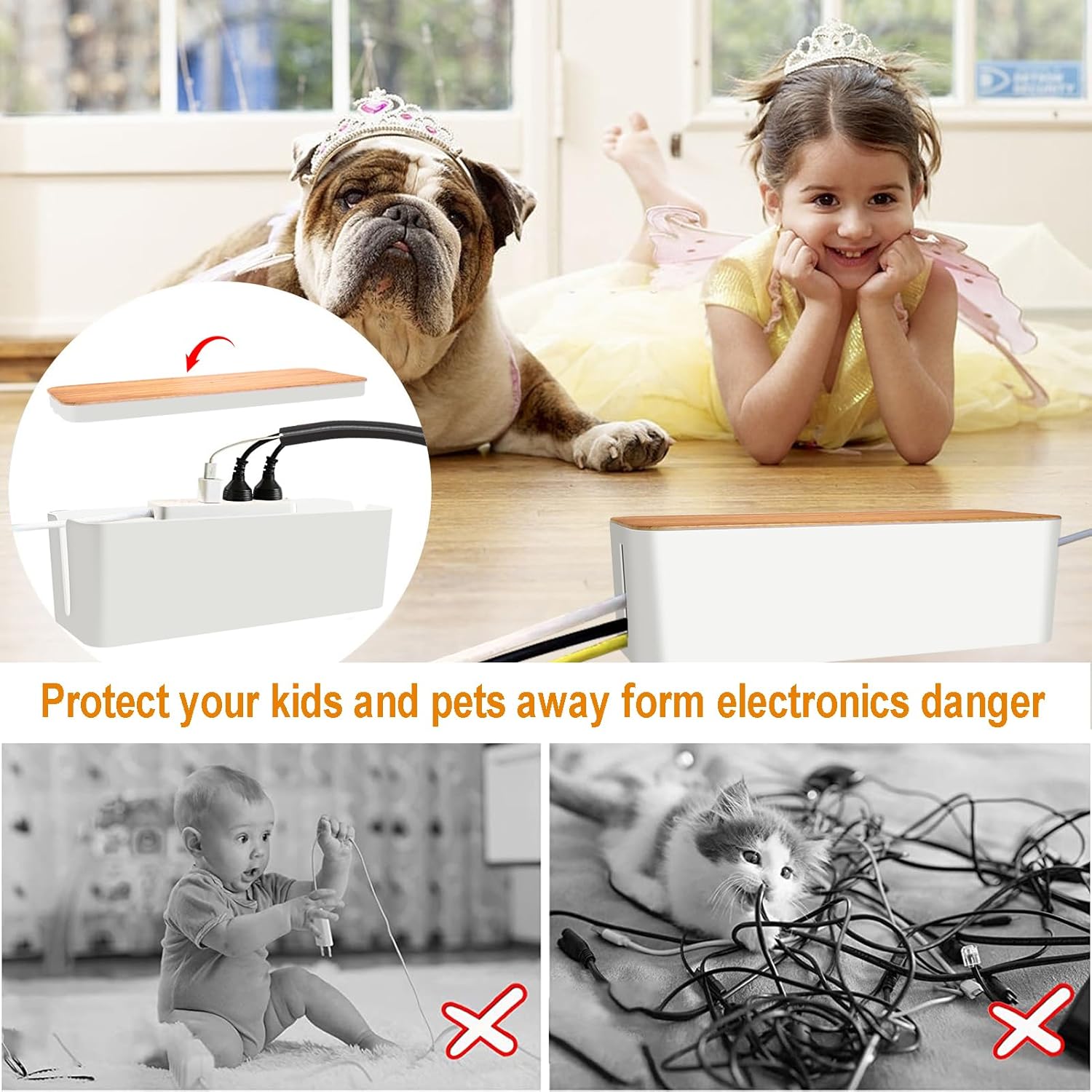- 【Three Sizes Cable Management Boxes for Power Strip and Cables】--We all dream a safety and neat house, these surge protector box L(16.14" x 6.14" x 5.11")-M(12.59" x 5.31" x 4.52")-S(9.25" x 4.52" x 4.52") cord box hider/surge protector box can help you store all of your cables & outlet apparatuses including charger, multiple power strips, cords, adapters, HDMI cables, etc in one convenient & safe place and keep all your accessory cables always tidy.
