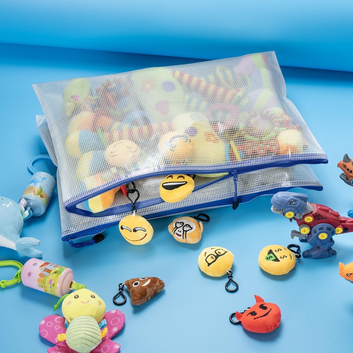 AUSTARK 20 Pcs Zipper File Bags, Plastic Mesh Pouch, Board Game Storage Bag, Waterproof Bags for Office School (A3 Size 16.9''x12'', White and Blue)