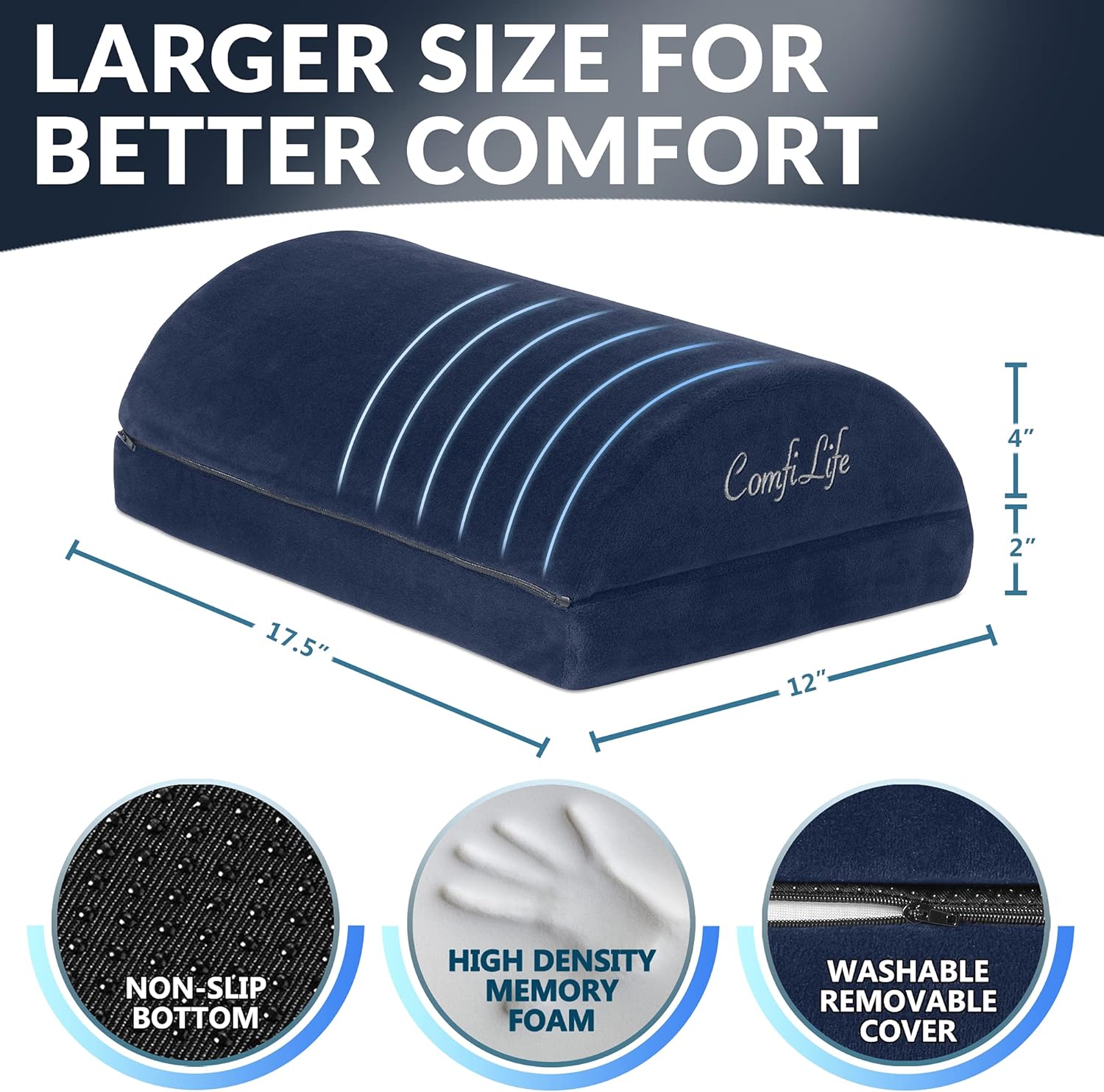 - Premium High Density Memory Foam – ComfiLife footrests are made from the high-quality memory foam which will easily conform to the shape of any size feet and provide plush comfort with or without shoes. Our footrest materials are more comfortable and supportive than those made from plastic or cheap foam and will provide natural support to your legs and feet for years to come. The cover is easily removable and machine washable so you can enjoy it without worries.