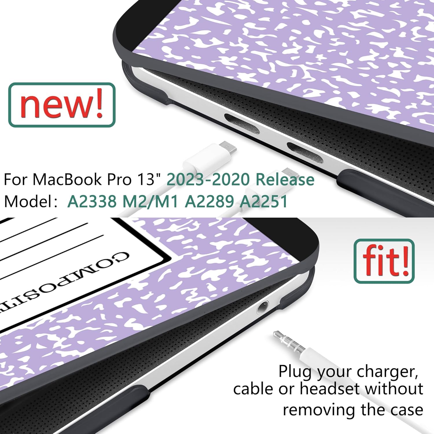 MEEgoodo Case for MacBook Pro 13 inch Case with M2 Chip 2022 2021 2020 New A2338 M1 A2251 A2289, Hard Shell with Keyboard & Camera Cover Compatible with 13 inch MacBook Pro, Composition Book Purple