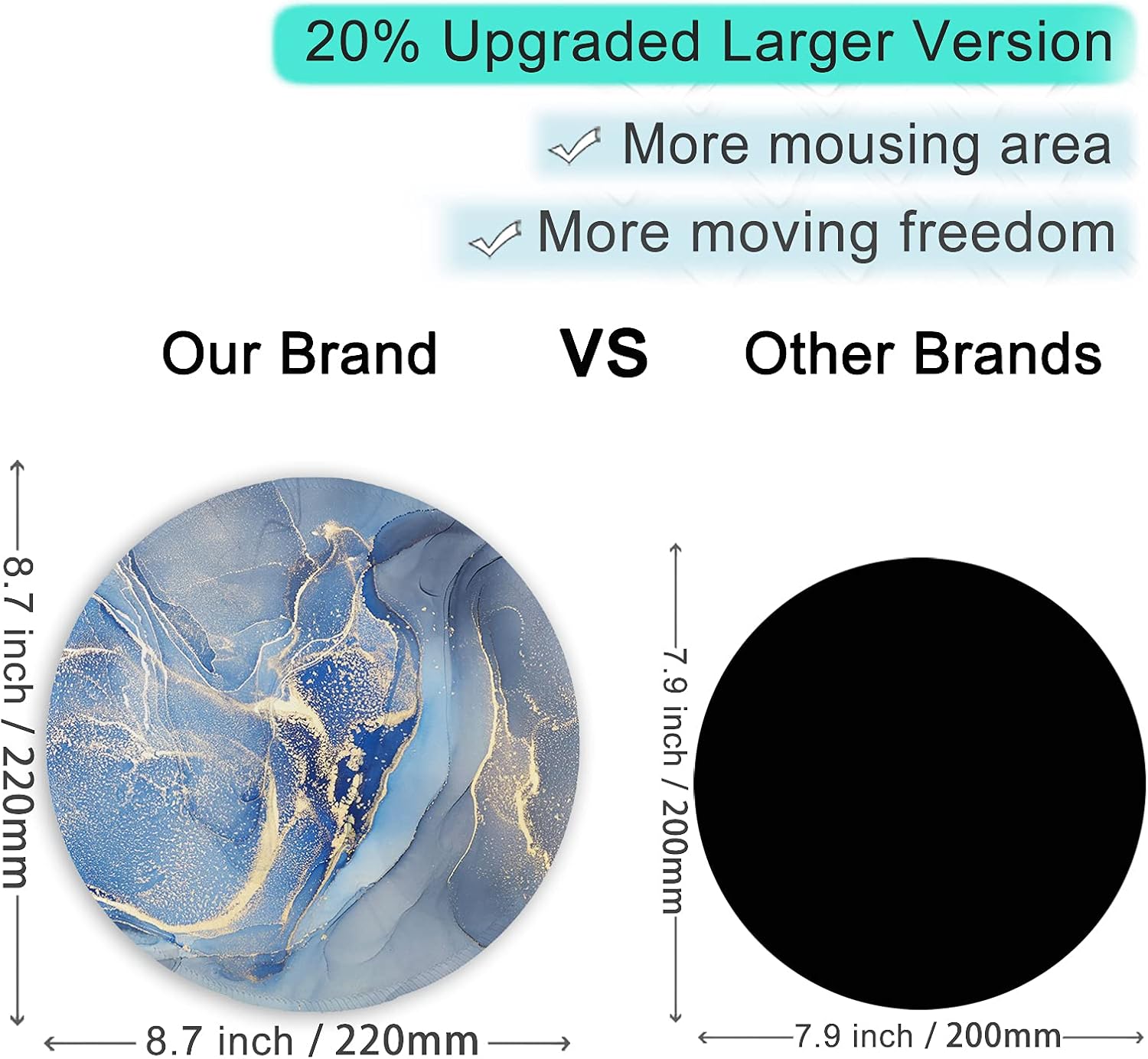 ITNRSIIET Round Mouse Pad with Stitched Edge Premium-Textured Waterproof Non-Slip Rubber Base Desktop Protection Mat Diameter 8.7 inches, Blue Marble Texture