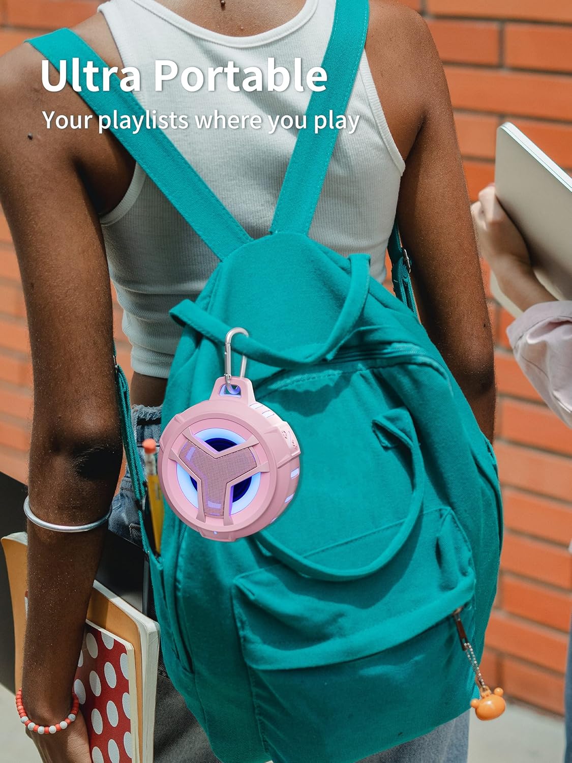 EBODA Bluetooth Shower Speaker, IP67 Waterproof Portable Wireless Small Speakers, Floating, 24H Playtime for Home, Beach, Pool, Kayak, Hiking, Boat Accessories, Gifts for Women, Girls - Pink