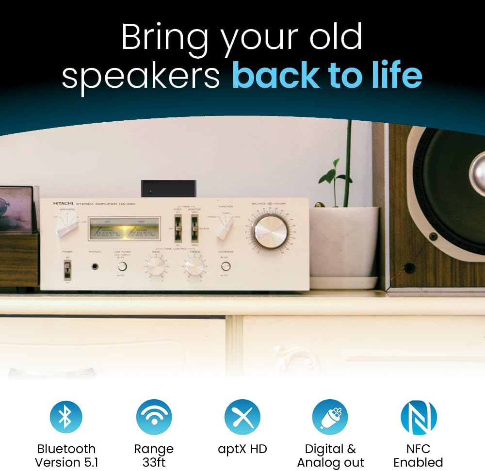 B1 Bluetooth Stereo Receiver,aptx LL, Hi-Fi V5.1 Audio Receiver, TI DAC for Analog Stereo RCA Output with Long Range, Digital Coaxial and Optical Output with NFC