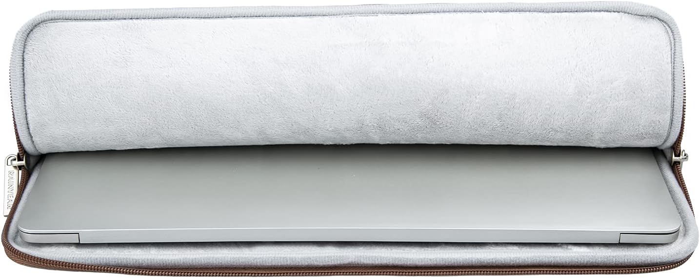 RAINYEAR 11 Inch Laptop Sleeve PU Suede Leather Case Protective Padded Cover Water Resistant Carrying Bag Compatible with 11.6 MacBook Air Surface Pro for 11" Notebook Tablet Chromebook(Brown)