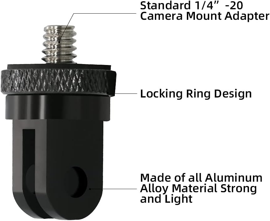 - Widely compatible: the metal adapter is suitable for all standard 1/4-20 threaded holes, such as insta360 ONE X2, insta360 ONE R panoramic camera, GoPro max, GoPro hero 13/12/11/10/9/8 black, DJI, etc.