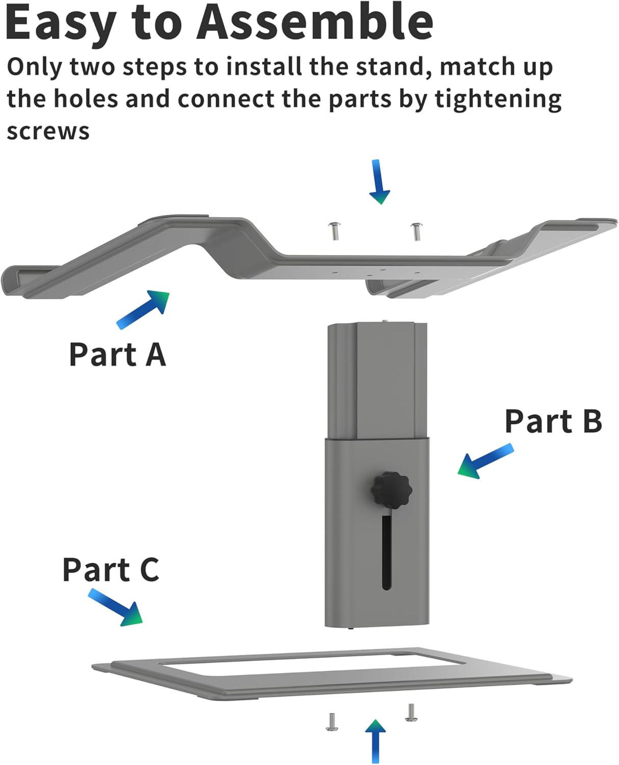 - Protective and Easy Installation - The silicone pads on the surface keep your laptop stay in place and protect your device from scratches. BTW, it just need two steps that you can install the stand, match up the holes and connect the parts by tightening screws.