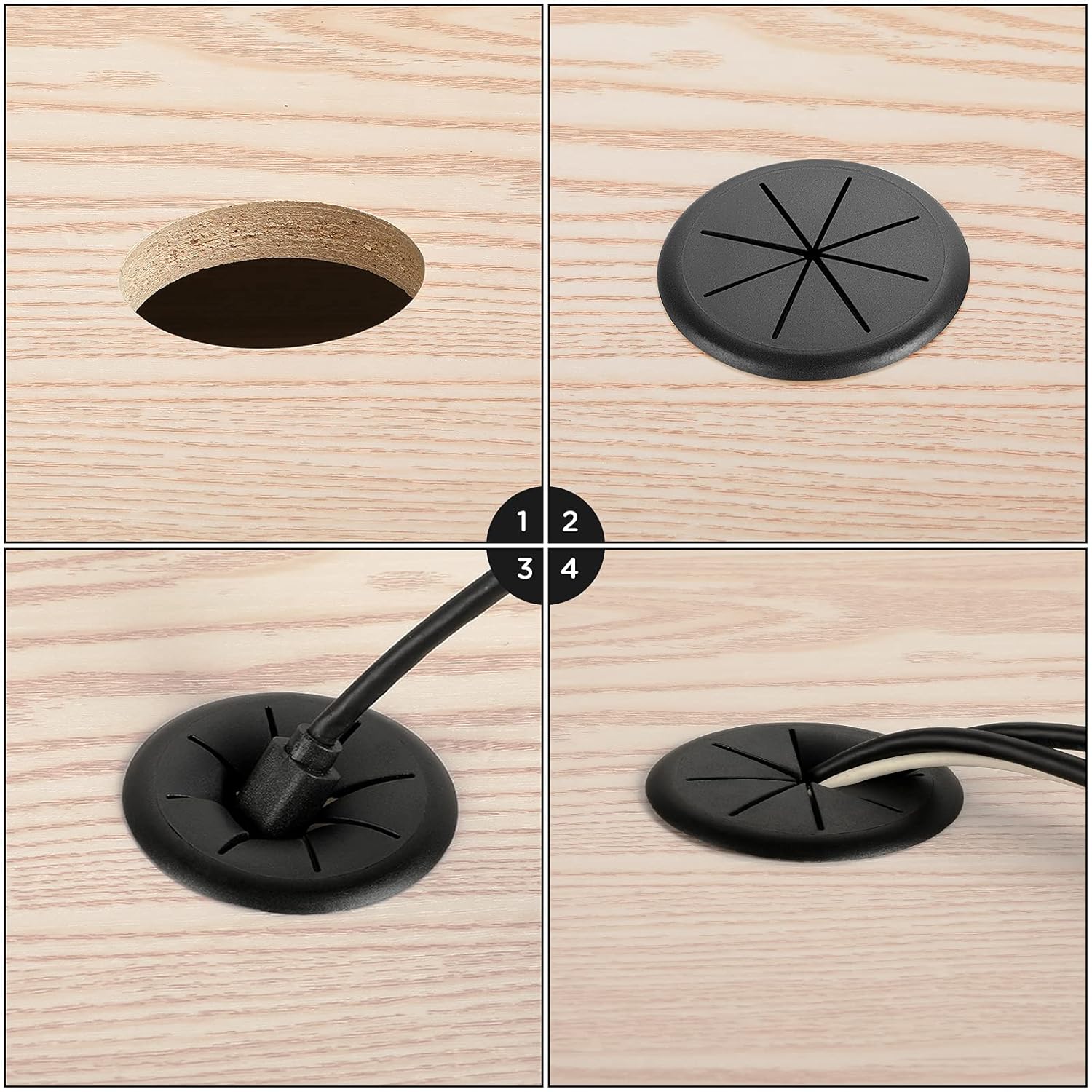 HYCC 2 Pack 2-3/8 Inch Flexible Desk Grommet,Organize Wires and Cables on Office Equipment, Computer Components, Entertainment Systems Effectively - Color: Black