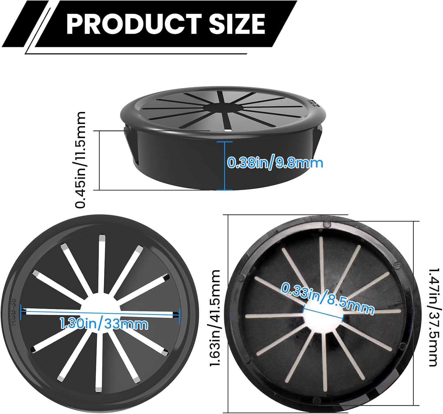 - With a bottom diameter of 37.5mm and a top panel diameter of 41.5mm, these grommets can accommodate openings of 37.5-39mm and extend up to 33mm.
