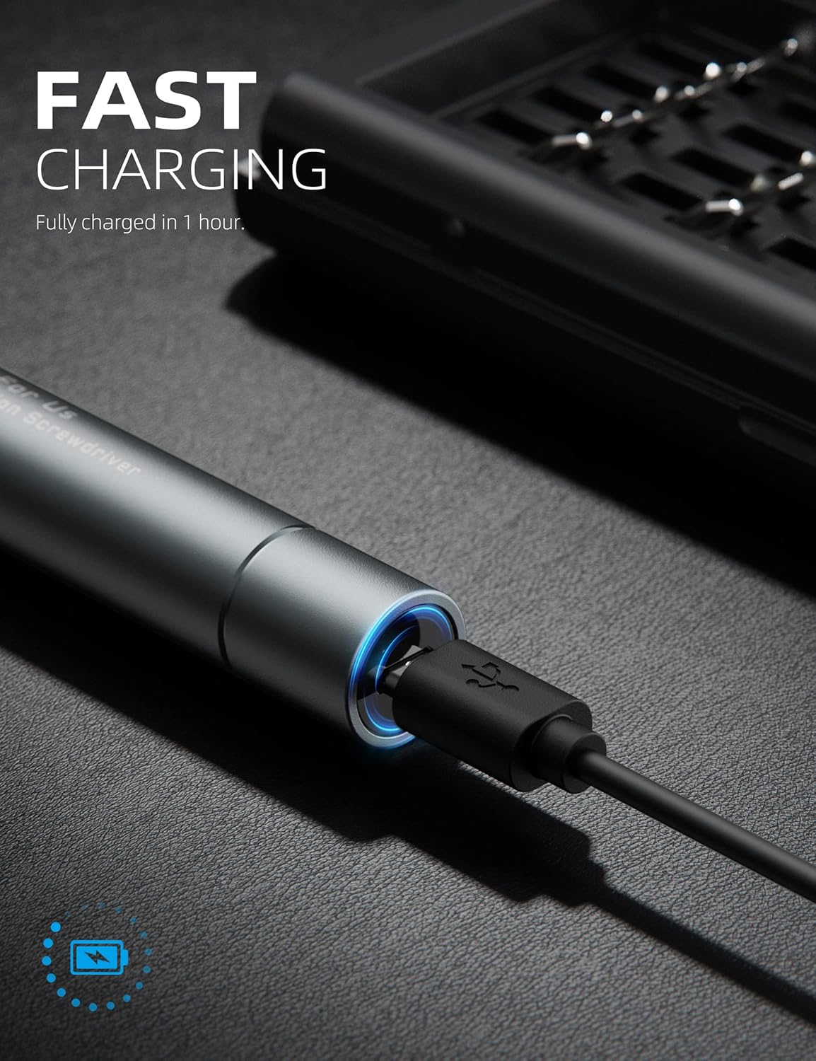 - 【Comprehensive 42-in-1 Screwdriver Set】This set includes 37 self-magnetic bits made from durable S2 hardened steel, perfect for various repair tasks. It comprises a Mini Electric Screwdriver, Clip Storage Case, 37 Precision Bits, USB Type-C Charging Cable, and User Manual, providing all you need for your DIY projects.