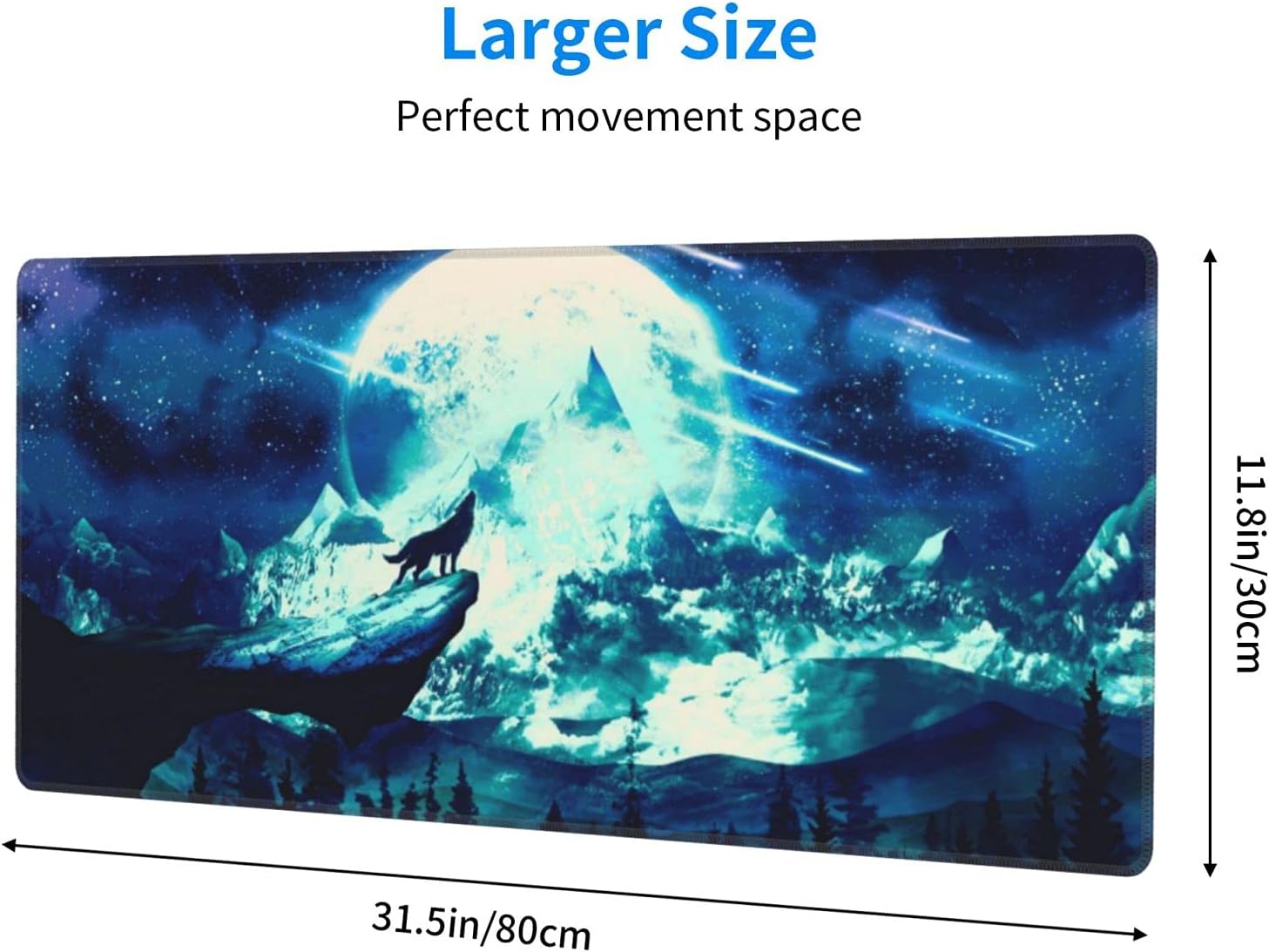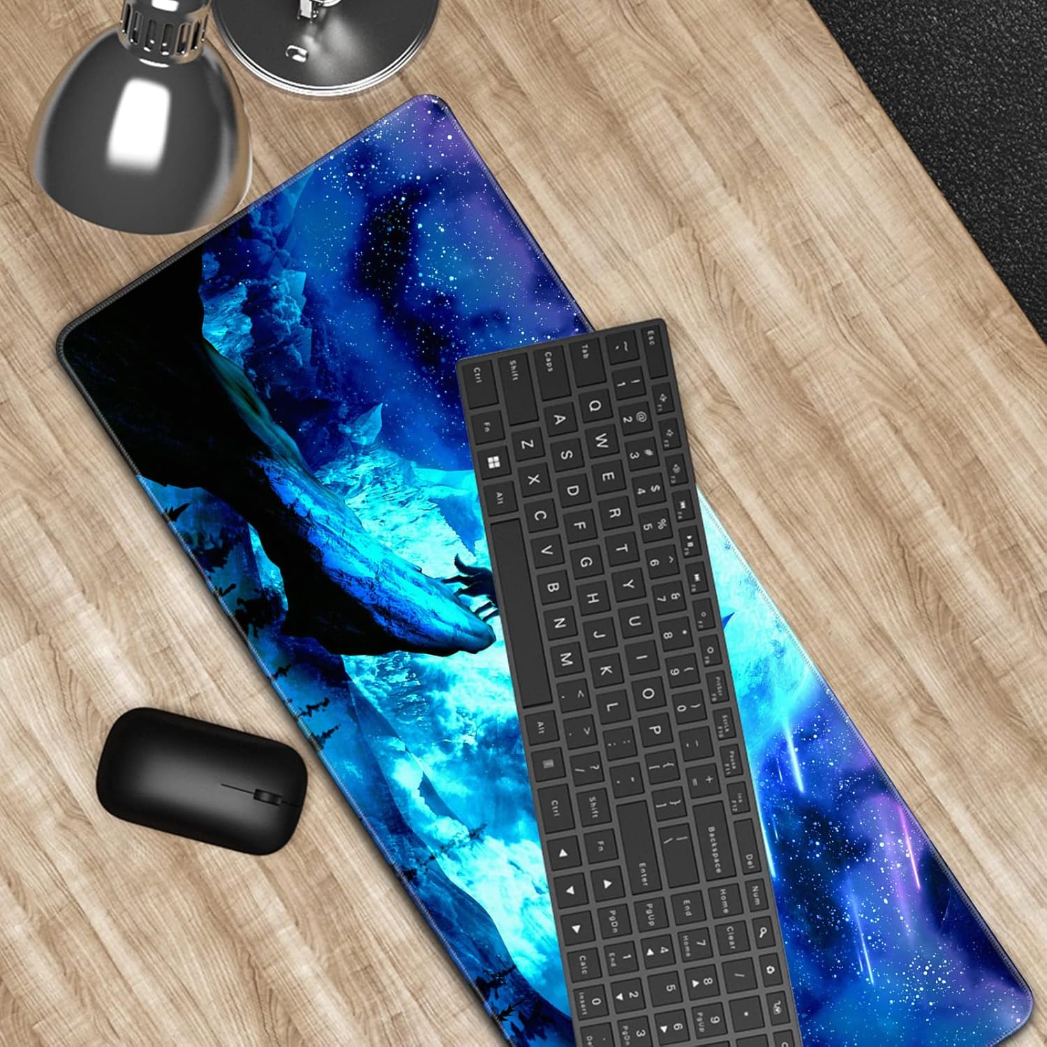 Gaming Mouse Pad Anime Mousepad Large Extended Wolves Gaming Mouse Mat with Stitched Edges Wolf Office Decor with Non-Slip Rubber Base Desk Mat for Work Gaming Office Home 31.5'' X 11.8'' Inch