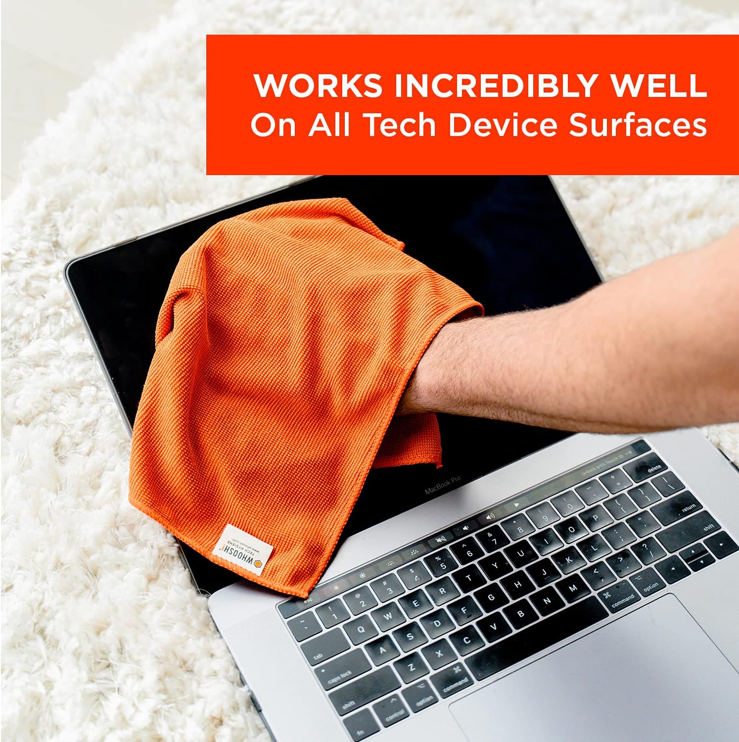 - ULTRA-PREMIUM MICROFIBER CLOTH - Wipe away grime, smudges, and dirt with this pack of microfiber cloths by WHOOSH! The tiny woven hoops make it easy to pick up small particles while giving your devices a new shine.