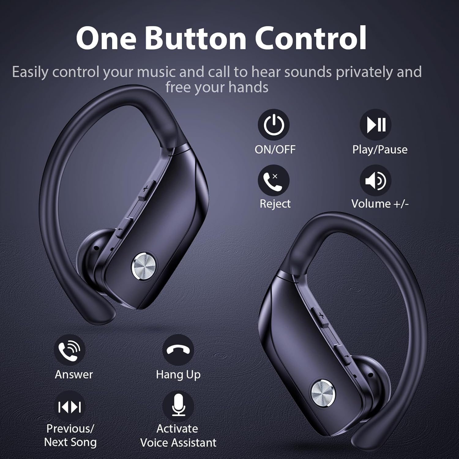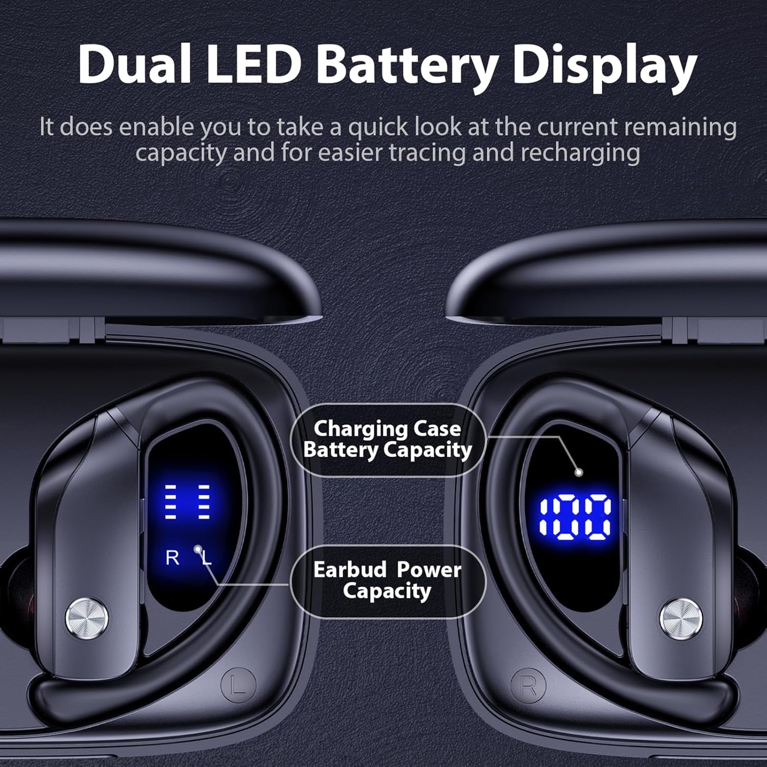 bmanl Wireless Earbuds Bluetooth Headphones 48hrs Play Back Sport Earphones with LED Display Over-Ear Buds with Earhooks Built-in Mic Headset for Workout Black