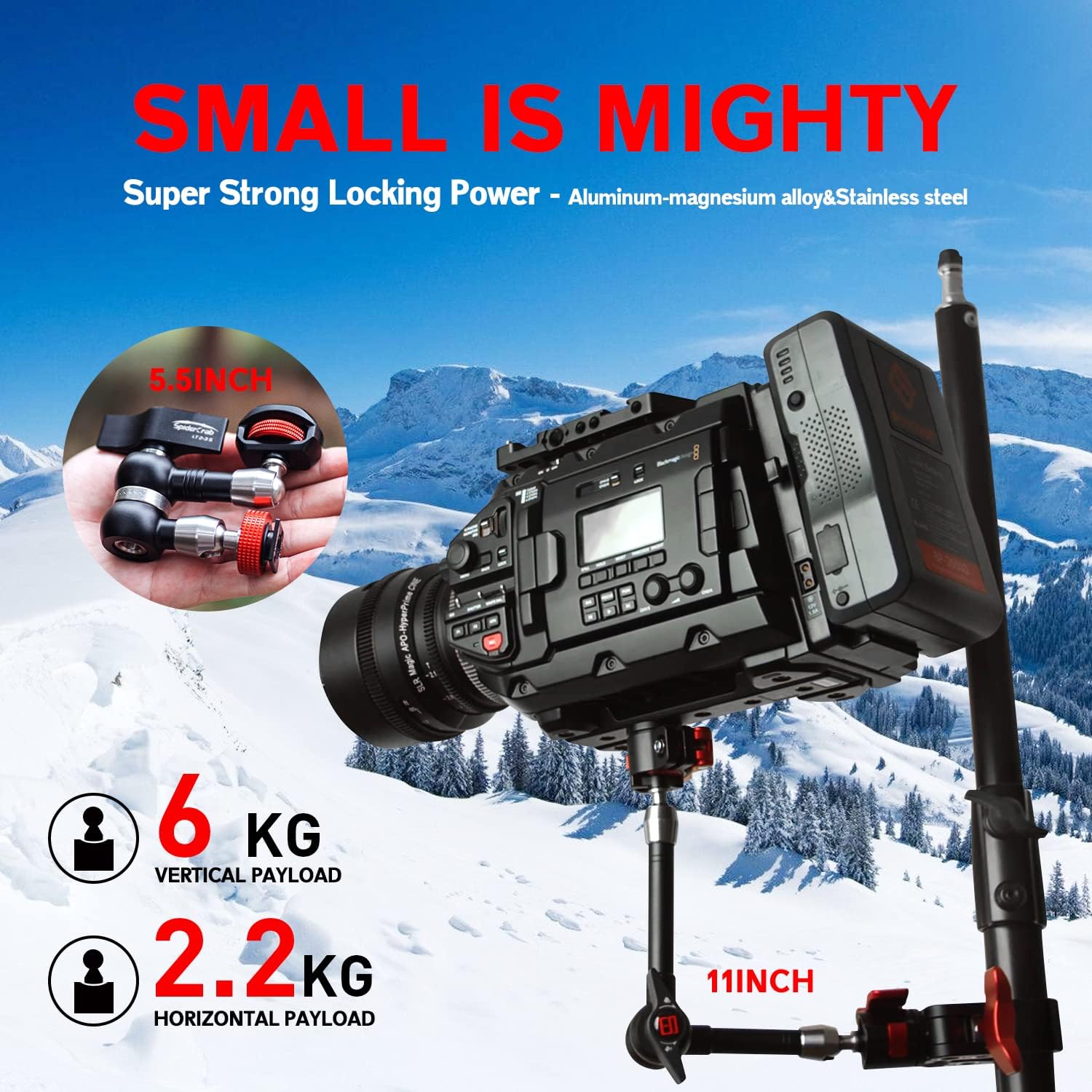 - 【Strong And Durable】Unique mechanical design ensures a ball head lock that is supremely strong, effective up to a maxpayload of 6kg/13.2 lb, Double 360 ° Ball Head Articulating design with One Knob to easily lock the magic arm in position,single Lock to all moving parts,Shake-Free stability. Variable friction control for accurate adjustment to all position movements.
