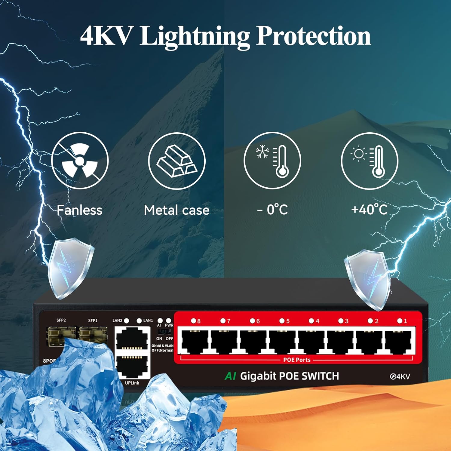 - 【AI PD Detection】The poe port will intelligently judge whether the device connected to the port needs power supply. If it is a non-poe device that does not need power supply, the switch will not supply power to these devices and will not damage the device.