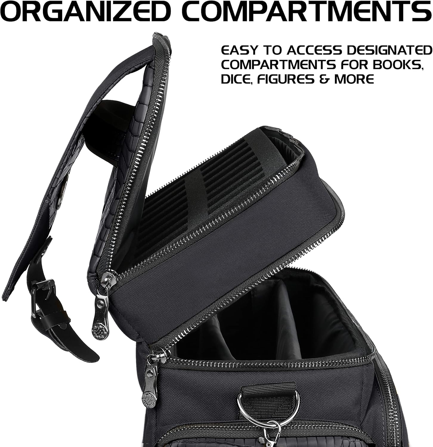 - RPG BAG FOR YOUR PERSONAL ARCANE LIBRARY: Store 4-8 books, sheets, and reference material for your next session in the spacious main compartment complete with a padded divider for custom organization