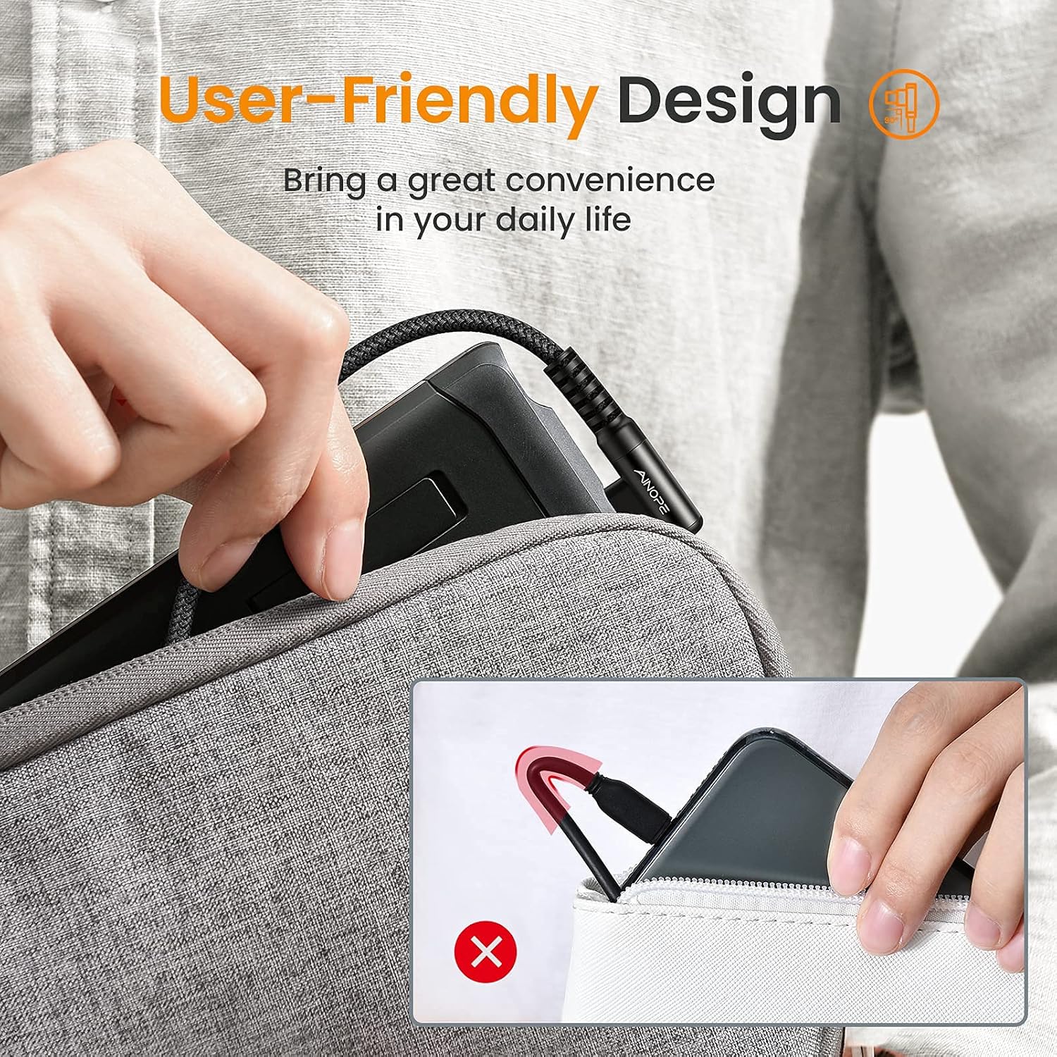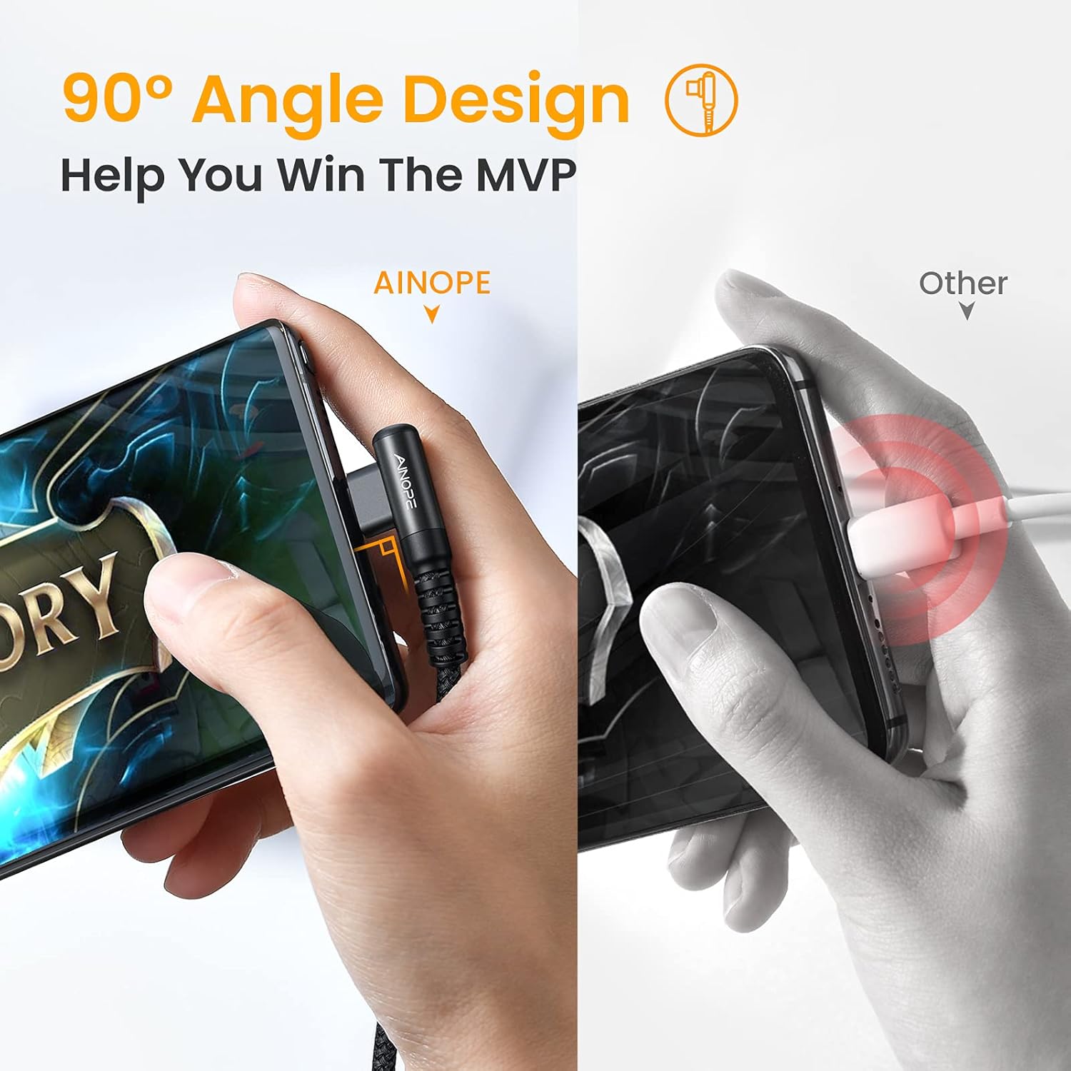 - Comfortable Grip at 90 Degrees: The USB-C Cable is designed with a 90-degree right angle elbow, which is not blocking the hand when using the horizontal screen. The comfortable length of 10ft allows you to use your device while charging long distances on the sofa or bed. Meet all your needs everywhere.