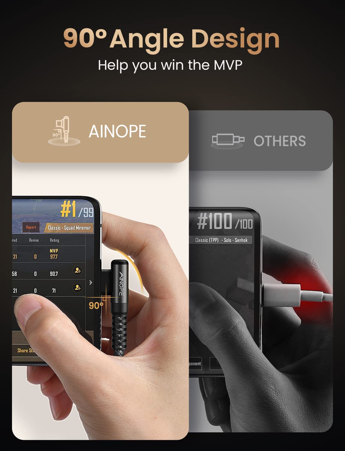 - Comfortable Grip at 90 Degrees: The USB Type-C Cable is designed with a 90-degree right angle elbow, which is not blocking the hand when using the horizontal screen. The comfortable length of 10ft allows you to use your device while charging long distances on the sofa or bed. Meet all your needs everywhere.