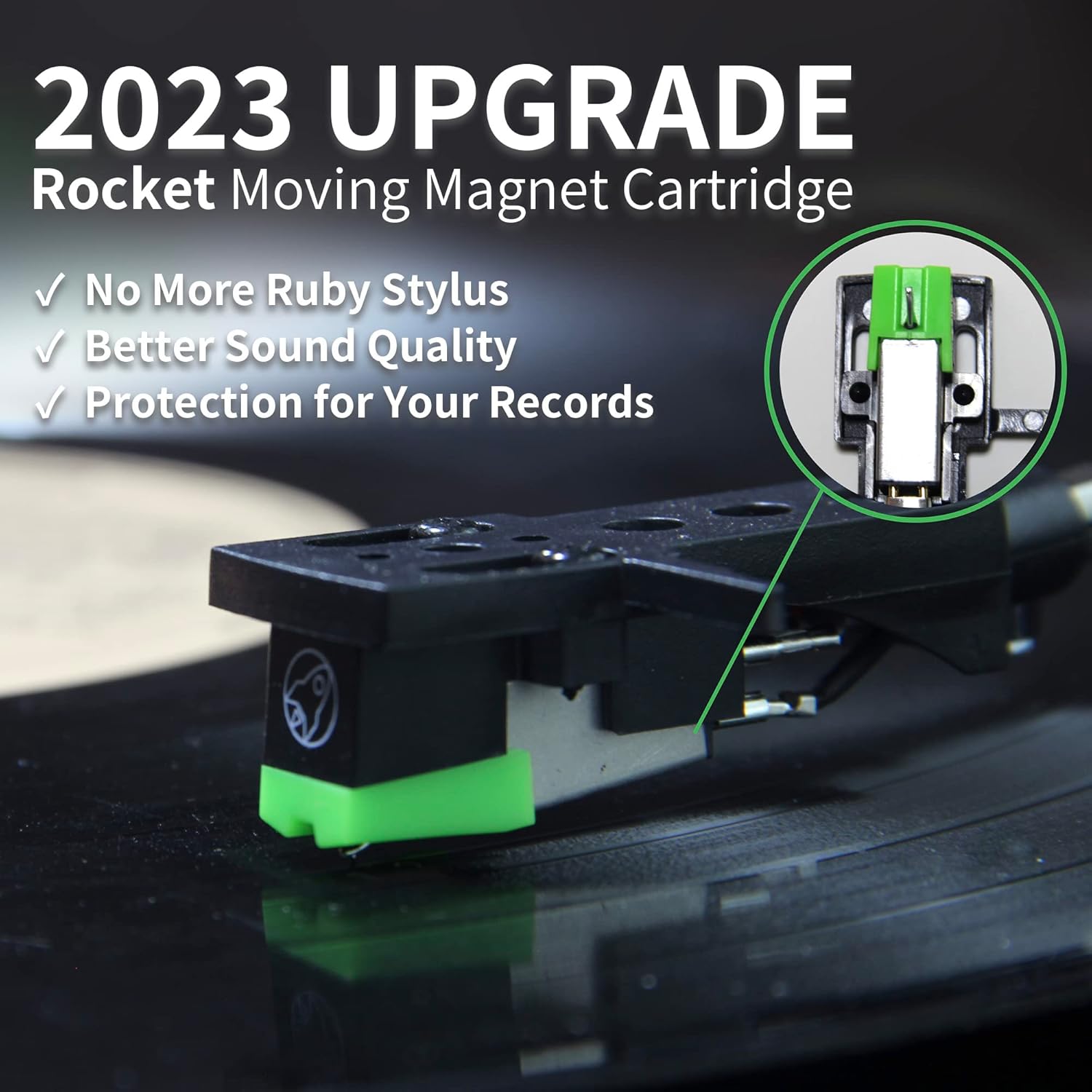 - 3-Speed Turntable with Rocket MM Cartridge Play your vinyl collection at 33, 45, or 78 RPM with precision. The Arkrocket Discovery II is equipped with a high-quality Rocket moving magnet (MM) cartridge and an automatic return tonearm, ensuring better sound quality and protection for your records.