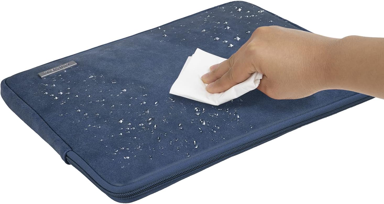 RAINYEAR 15.6 Inch Laptop Sleeve Protective Case PU Suede Leather Zipper Padded Cover Water Resistant Carrying Bag Compatible with 15.6" Notebook Computer Chromebook(Deep Blue)