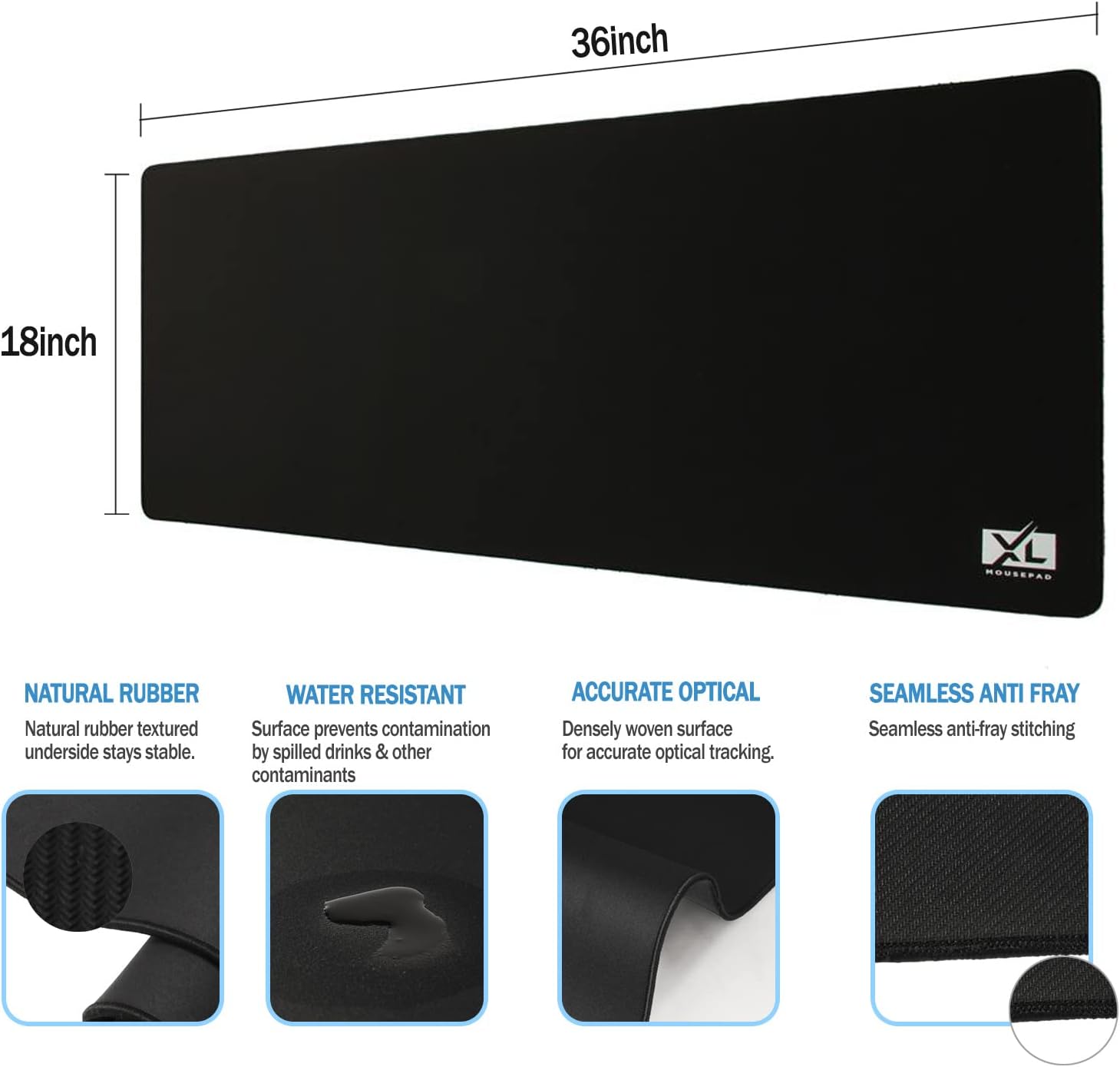 2XL Huge Extra Large Gaming Mousepad for Full Desk - Super Thick Nonslip Rubber Base and Waterproof Desktop Keyboard Extended Mouse Mat (Black, 2XL (36''x18''))