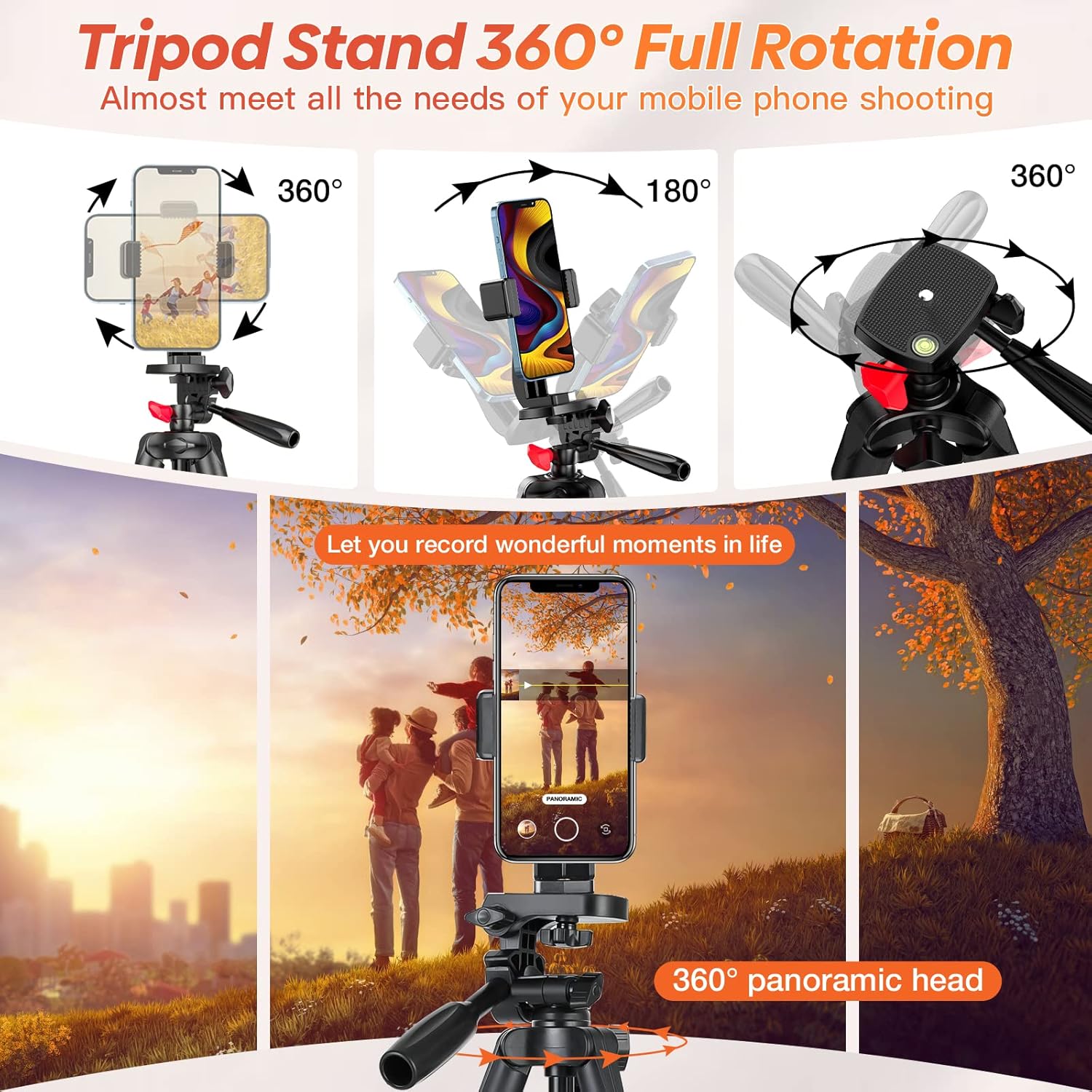- 【Lightweight and Portable】Our phone tripod stand is extendable from 18.3 to 65 inches which is for various photography heights. It weighing only 574g but durable, this adjustable cellphone tripod is easy to carry and store, making it for travel and outdoor activities.
