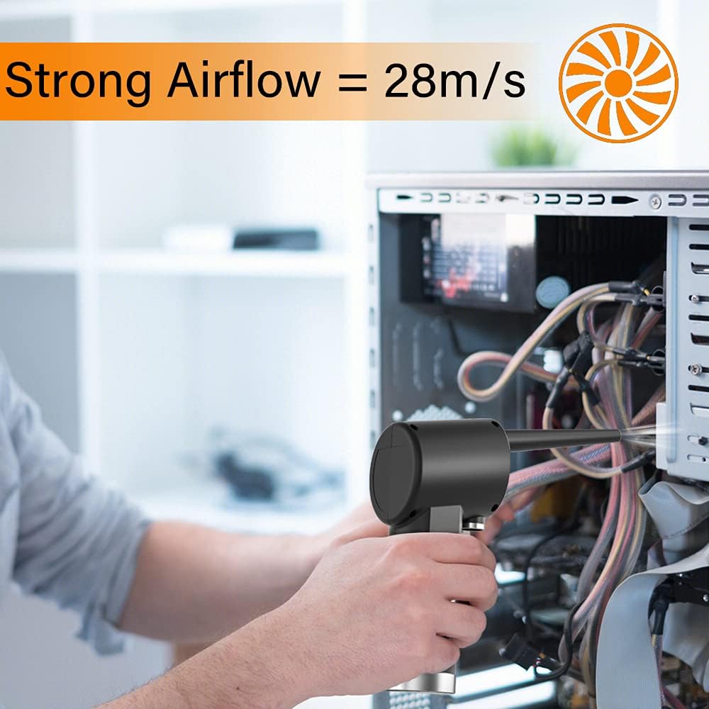 - [Strong Wind Duster] Dorobeen air duster can provide 28m/s strong wind, powerful compressed air thrust is your good helper, used for deep cleaning of tiny dust, such as printed circuit boards, computers, electronic products, traditional wipers or Instruments and medical equipment that cannot be cleaned by the duster. Its motor allows the maximum speed to reach 33000 RPM.