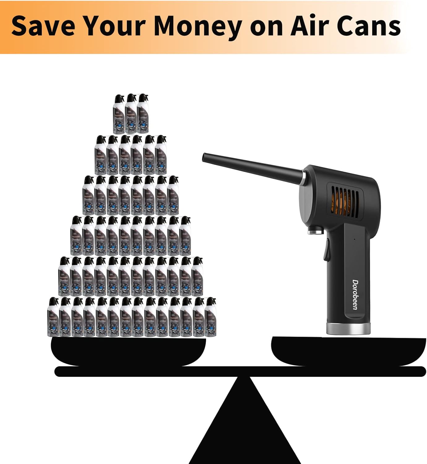 DOROBEEN Compressed Air Duster, Cordless Portable Rechargeable Compressed air, 33000 RPM Electric Air Duster for Computer Keyboard Electronics Cleaning, Built-in Battery Electronic Blower (Black)