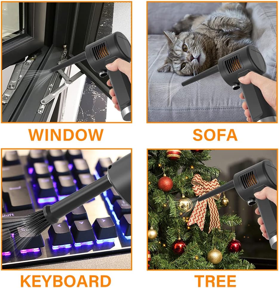 - [Rechargeable Cordless Air Duster] Built-in battery, it can run continuously for nearly 30 minutes. It can be charged through the USB interface and can be used repeatedly. It is an environmentally friendly alternative to compressed air tanks.