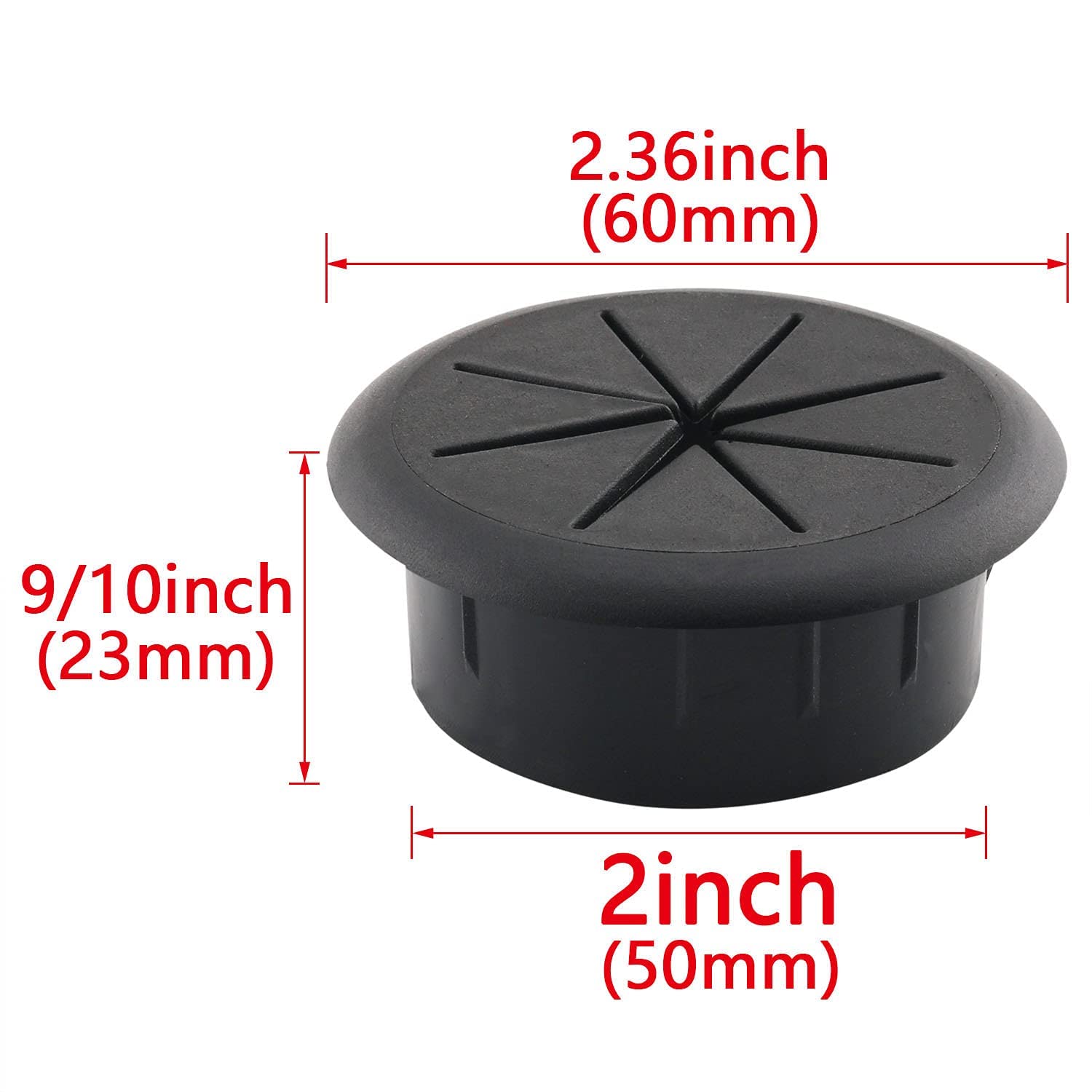 HJGarden 2PCS 2Inch (50mm) Desk Cord Grommets Wire Cable Hole Cover for Office PC Desk Cable Cord Cover Black