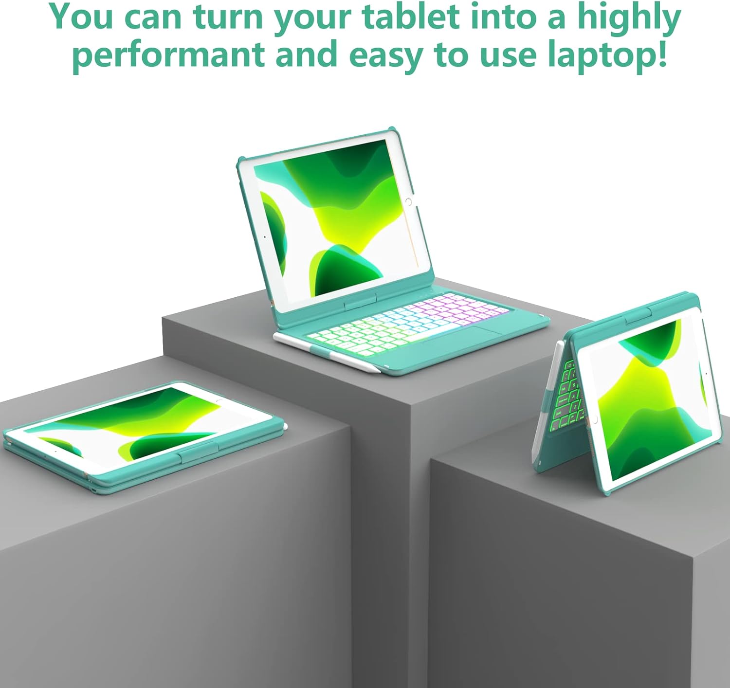 - Keyboard Case for iPad 10.2 9th Gen /8th Gen /7th Gen:The unique 360-degree rotation and 180-degree flip design allow you to adjust the iPad to any angle that suits your needs. Whether you’re presenting a slideshow, watching your favorite show, or reading a book, this flexible design ensures you get the perfect viewing angle every time. The ability to flip and rotate the iPad easily transforms it into a mini-computer, making it incredibly versatile.Convenient to your life