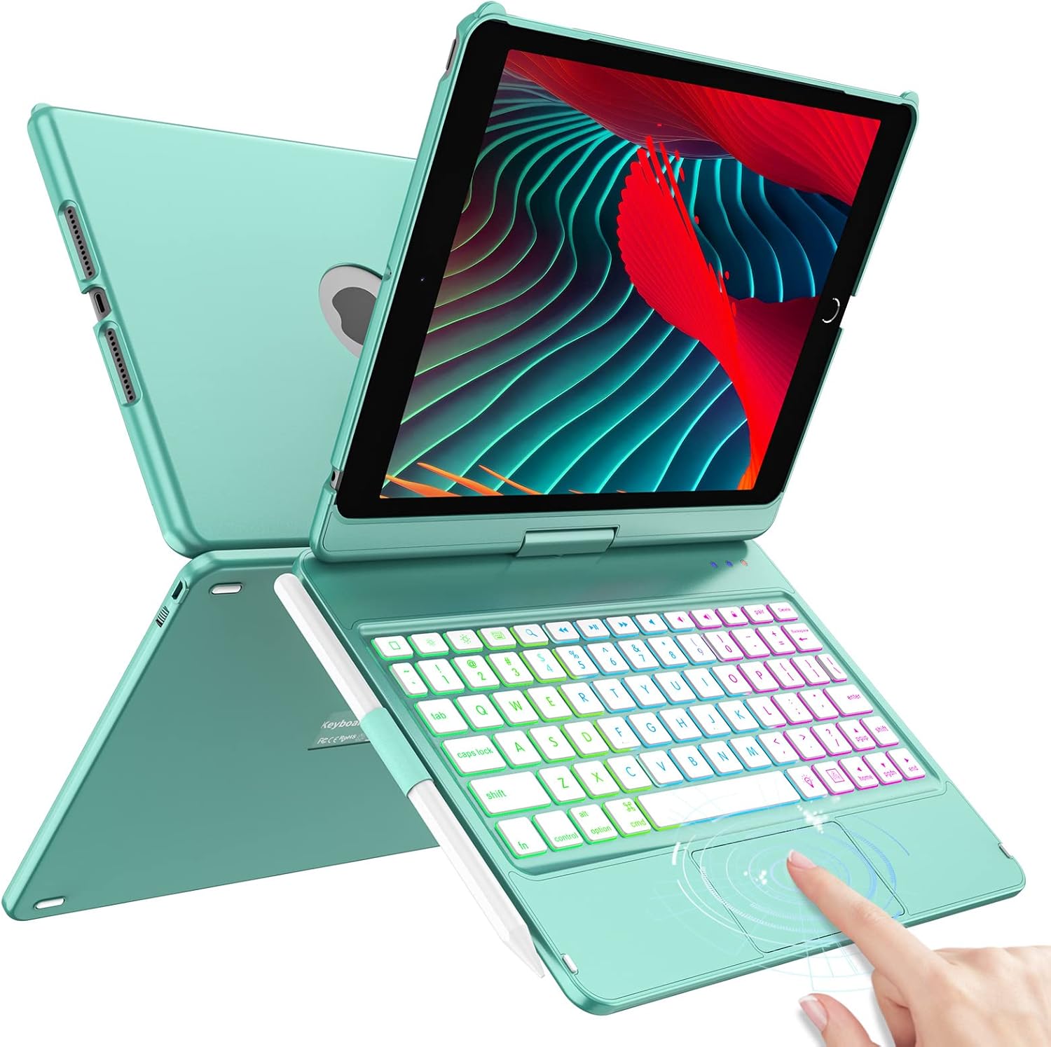 HOTLIFE Keyboard Case for iPad 10.2 - Keyboard for iPad 9th Generation & 8th & 7th Gen - Touch Wireless Backlight Keyboard - 360° Rotatable Protective Cover with Pencil Holder