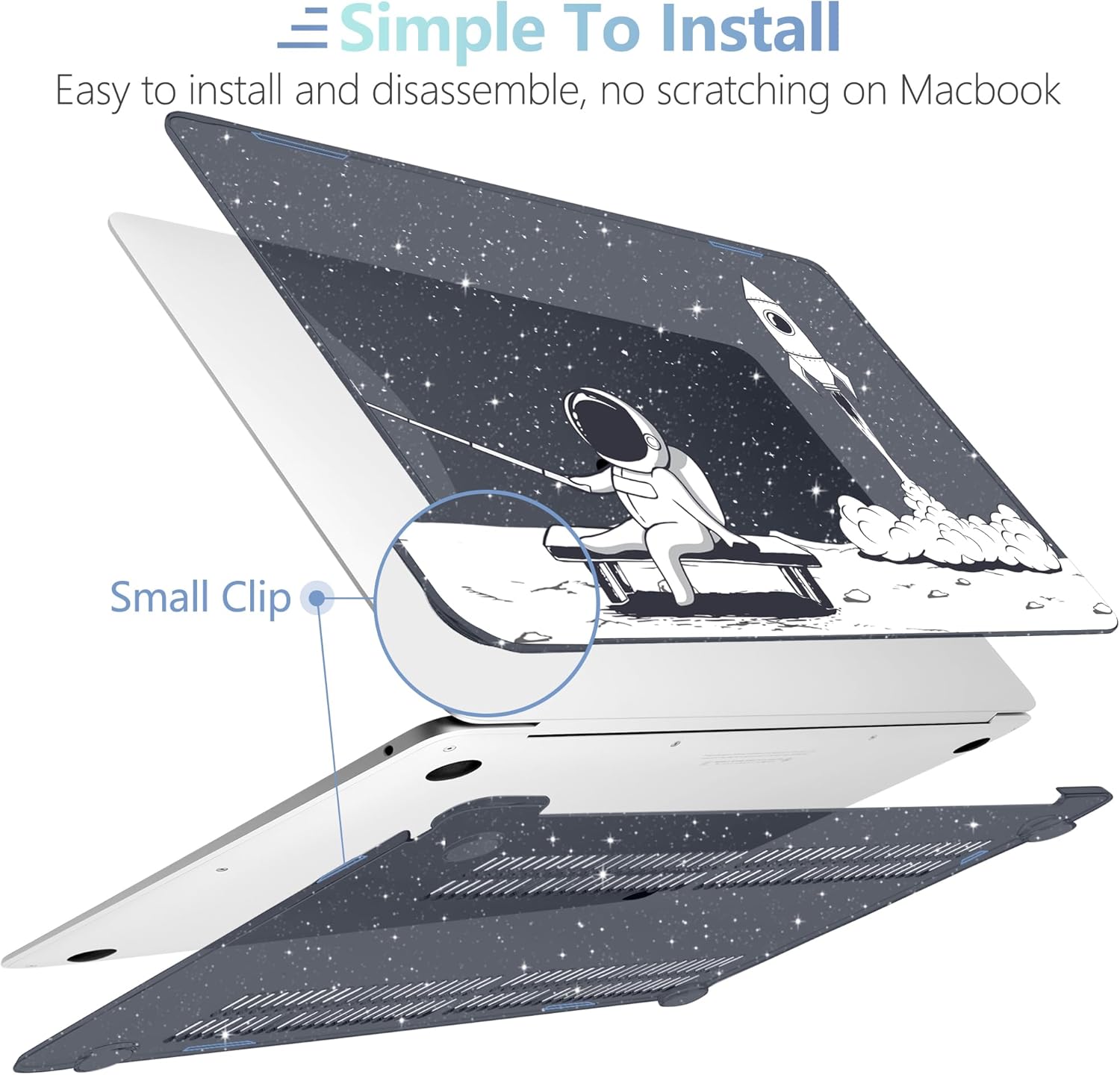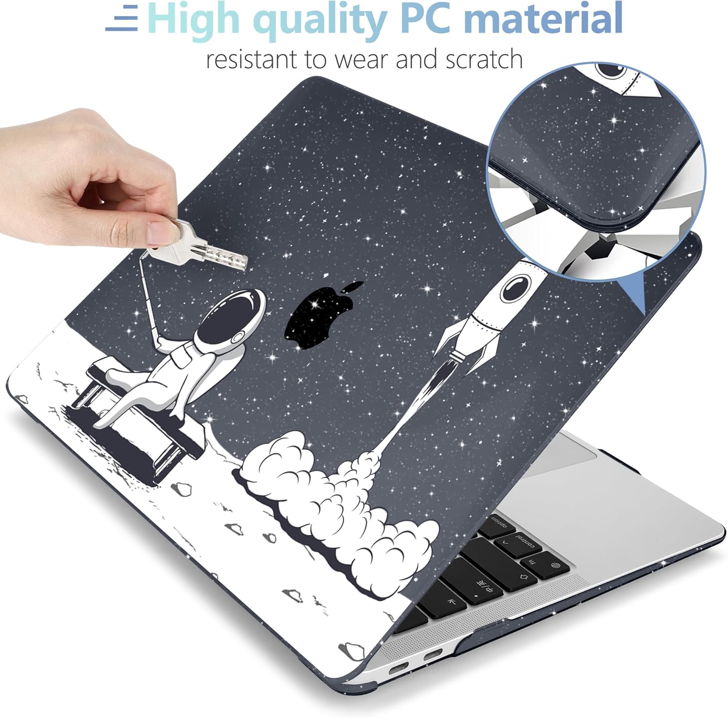 MEEgoodo MacBook Air Case 13.3 Inch - Hard Shell with Keyboard Cover & Touch ID - Astronaut Rocket Glitter