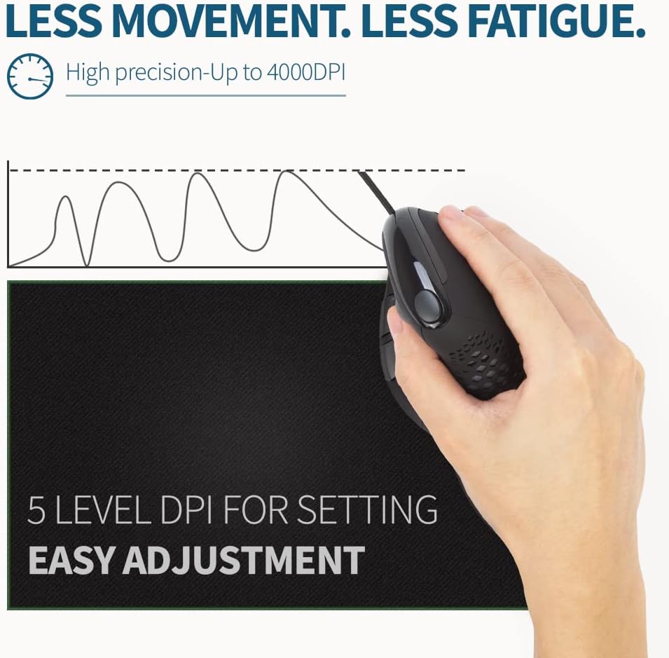- Mouse Sensitivity: Switch between five DPI gears (800/1200/1600/2400/4000) to realise the pointer speed and mouse accuracy, and enjoy the most appropriate mouse responsiveness