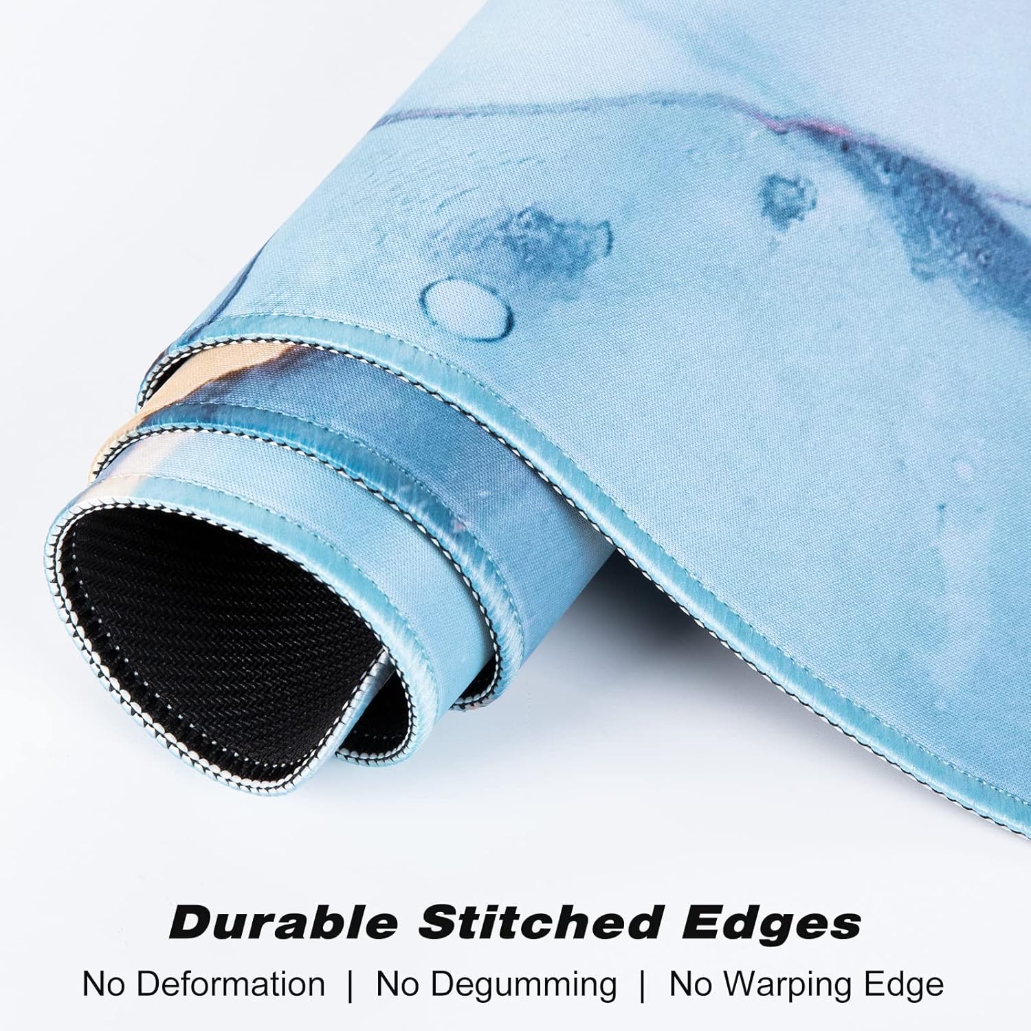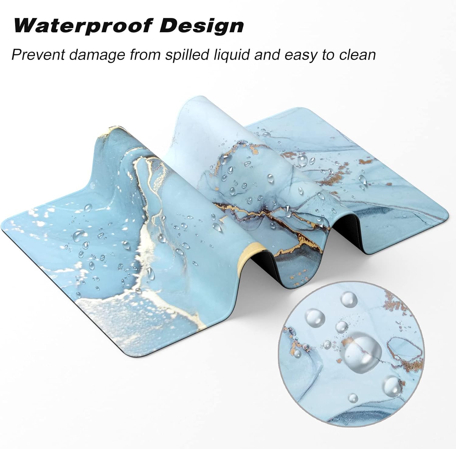 Extended Gaming Mouse Pad, XXL Large Desk Pad 30 x 14 Inch, Big Computer Keyboard Mousepad, Waterproof Mouse Mat with Stitched Edges and Non-Slip Base for Women Office Gaming, Blue Marble