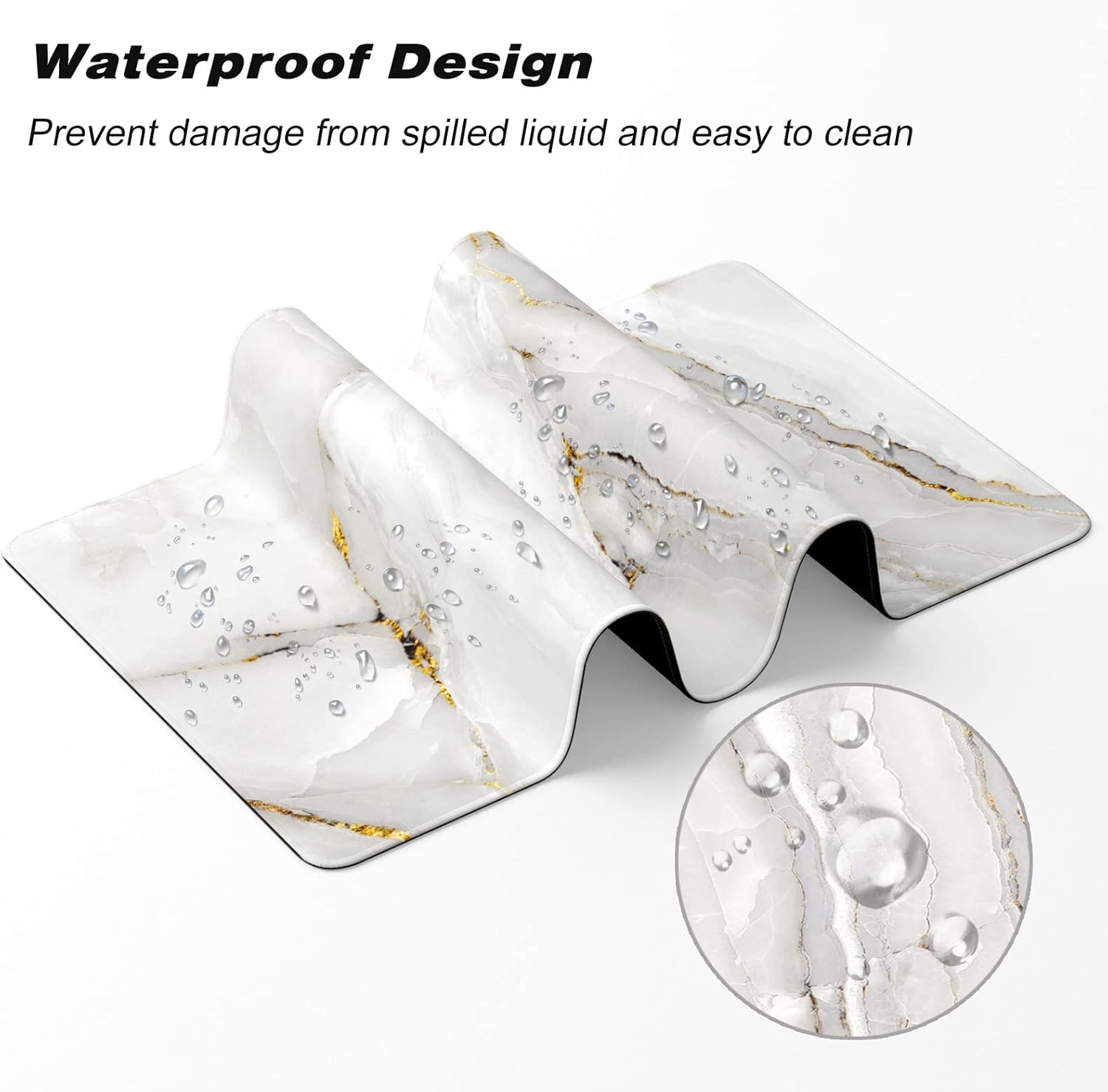 Extended Gaming Mouse Pad, XXL Large Desk Pad 30 x 14 Inch, Big Computer Keyboard Mousepad, Waterproof Mouse Mat with Stitched Edges and Non-Slip Base for Women Office Gaming, White Marble