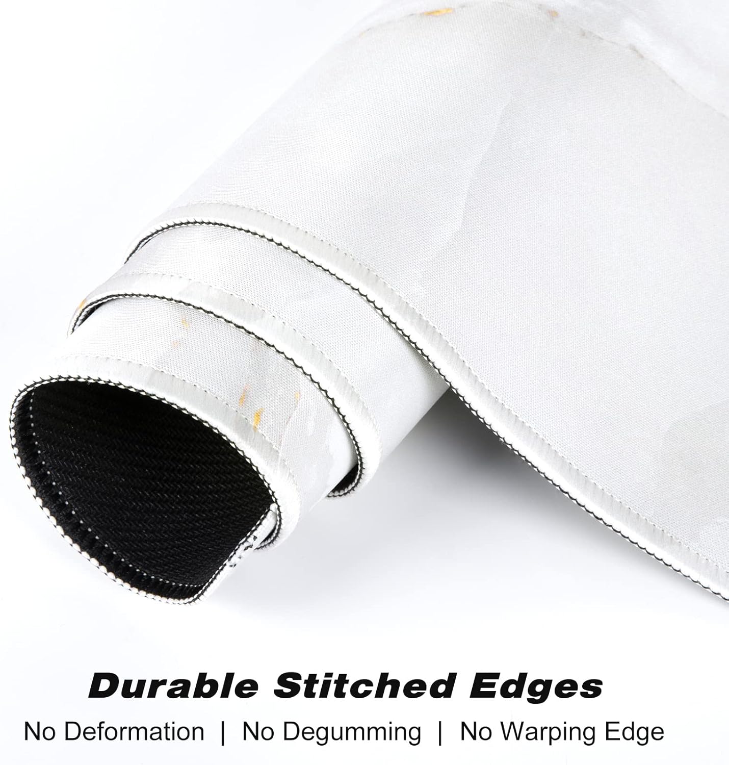 - 【Durable Stitched Edges】The edges of this gaming mouse pad are reinforced with double stitched to prevent the cloth top from fraying or peeling away from the non-slip rubber backing which ensure long-term use without deformation and degumming. Commitment won't curl. Eco-friendly materials, non-toxic and no awful smell.