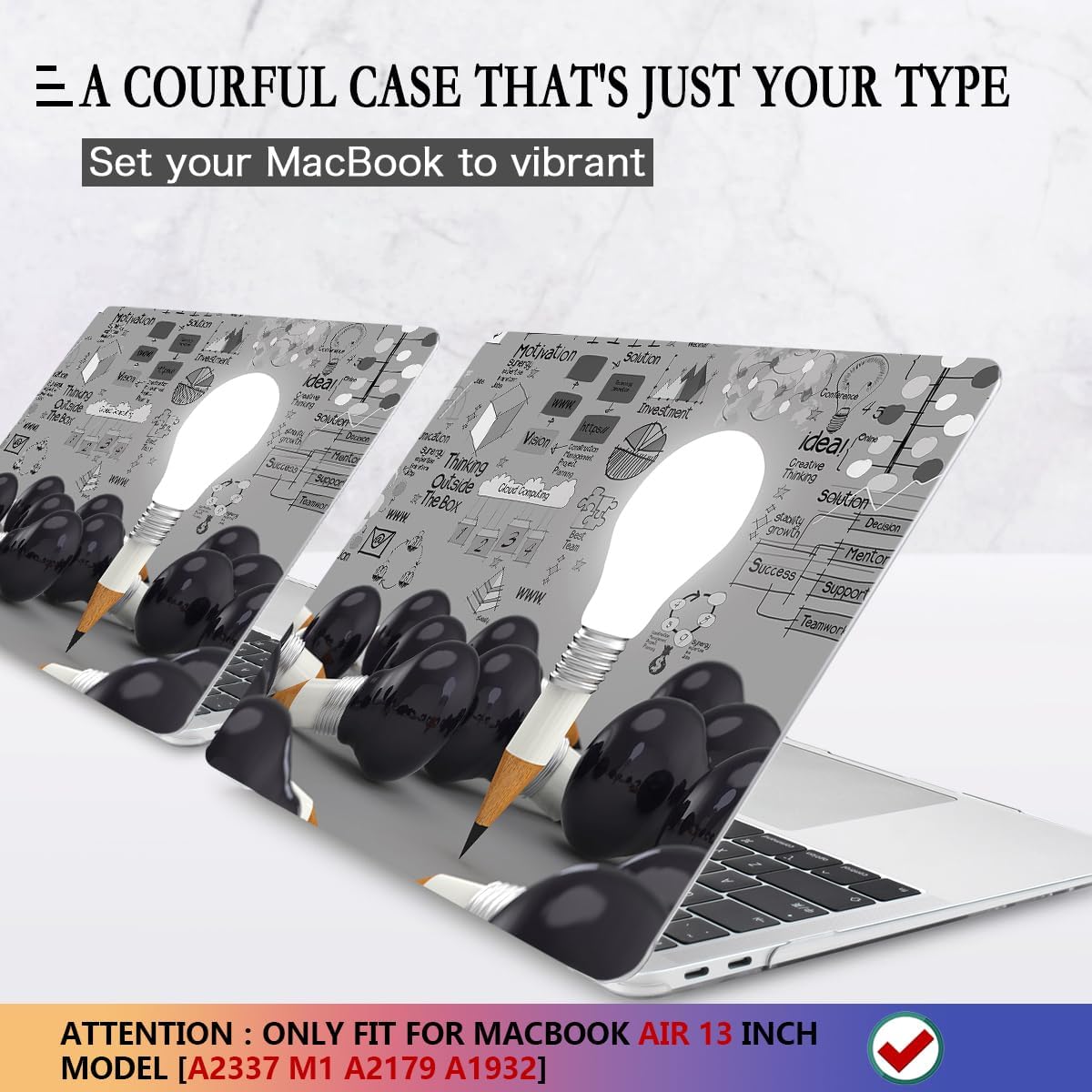 CISSOOK Creative Bulb Hard Shell Case for MacBook Air 13 inch A2337 M1 A2179 A1932 with Touch ID 2021-2018 Release, Plastic Hard Shell Cover with Keyboard Cover for MacBook Air 13 with Retina Display