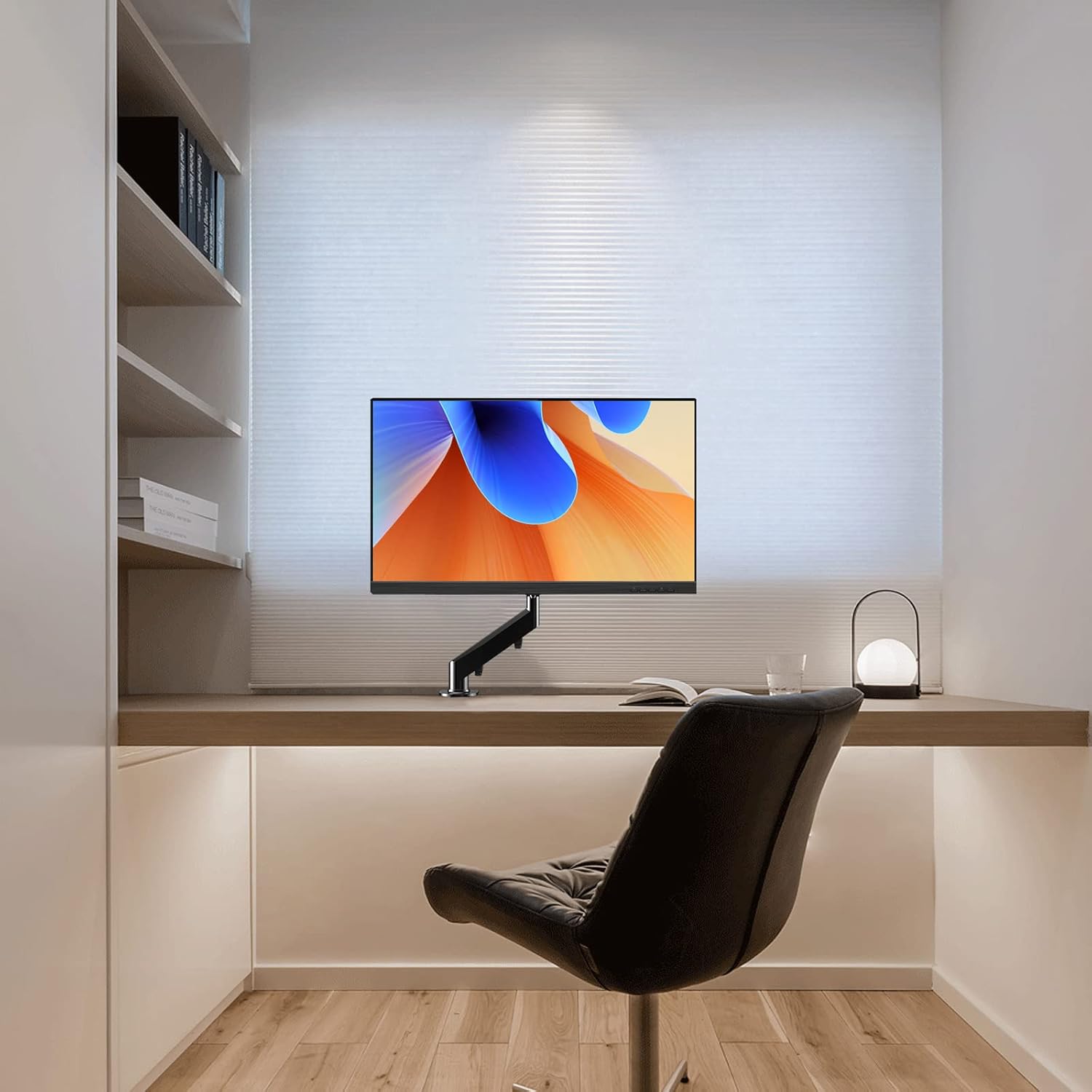 Gas Spring Monitor Arm 32 Inch,Adjustable Single Monitor Desk Mount with Swivel/Tilt/Rotation,Computer Monitors Stand Holder with Clamp/Grommet Mounting Base, VESA Mount Bracket