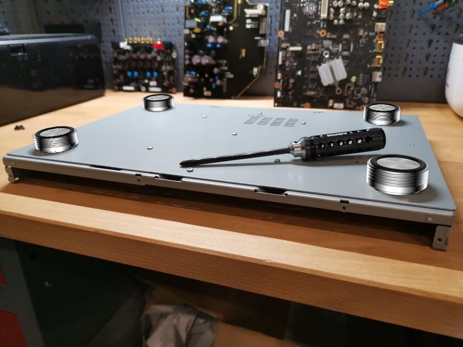 - Prevents the transmission of unwanted vibrations from the loudspeaker boxes, noise killer, all hi-fi components are decoupled from low-frequency vibrations