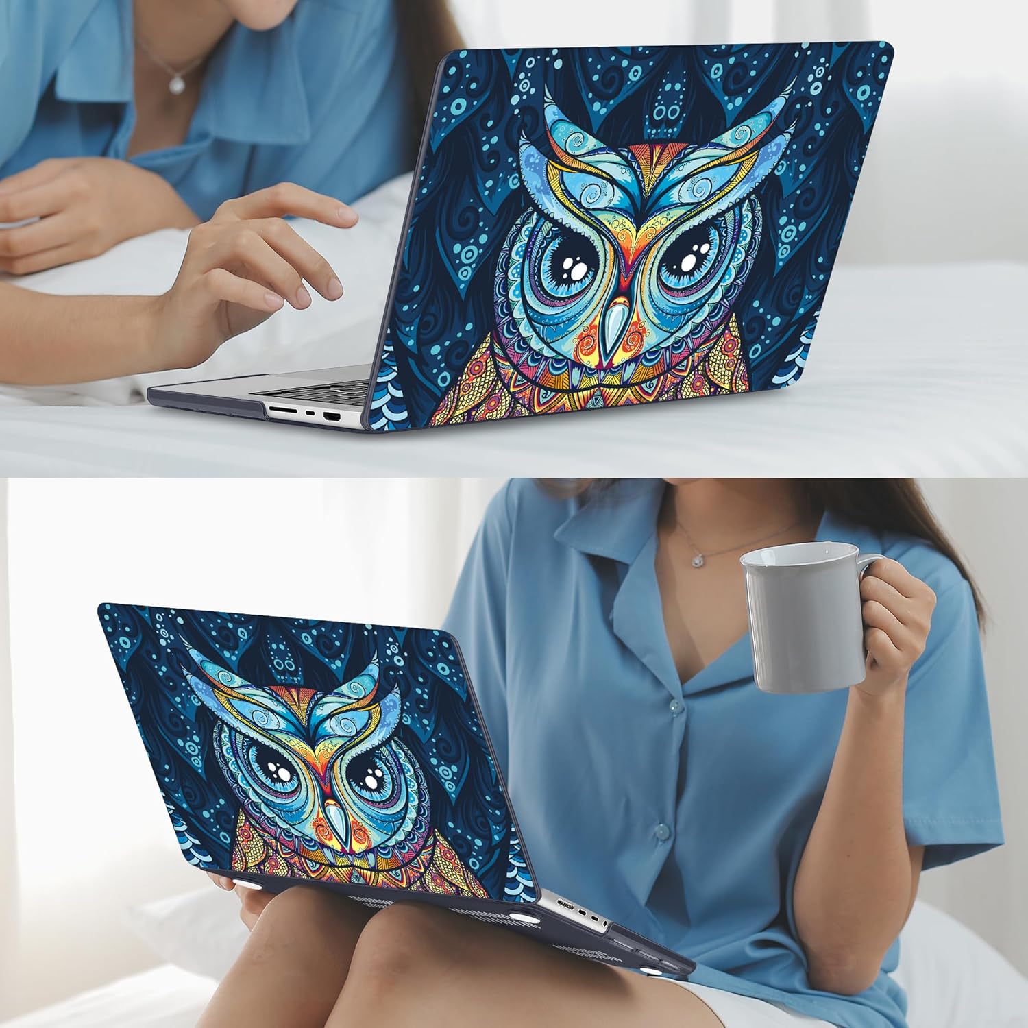 Mektron Case for MacBook Pro 16" M4 A3403 A3186 M3 A2991 M2 A2780 M1 A2485 (2021/2023/2024) Pro/Max with Touch ID, Hard Shell Plastic Laptop Cover Keyboard Cover Screen Protector, Owl