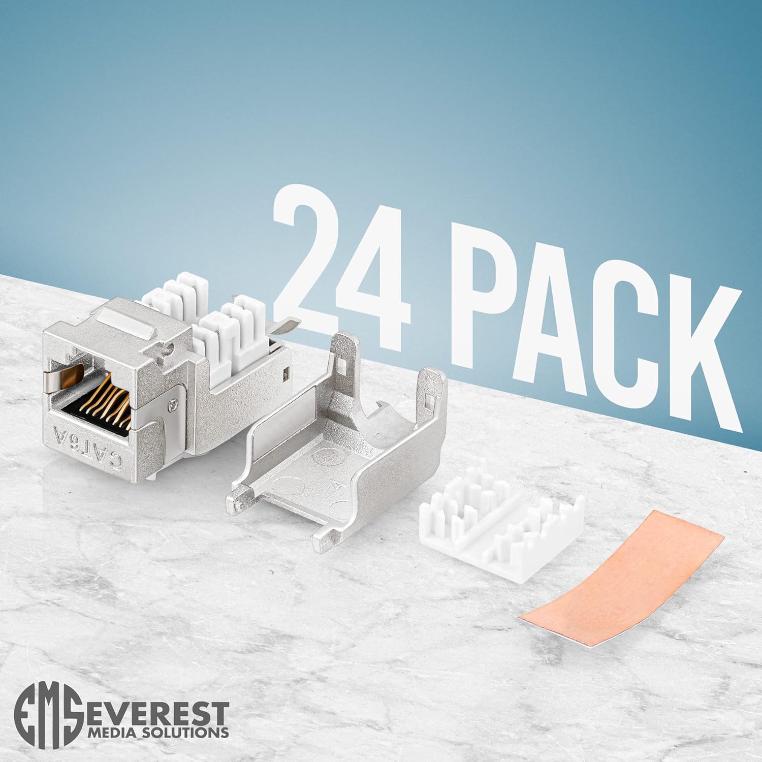 - Everest Media Solutions RJ45 Shielded Keystone Jack - 24-Pack - Slim Profile, 90 Degrees, F/STP Female Connector - Tested for CAT5e, CAT6, CAT6A, CAT7 - up to 10GB Speed