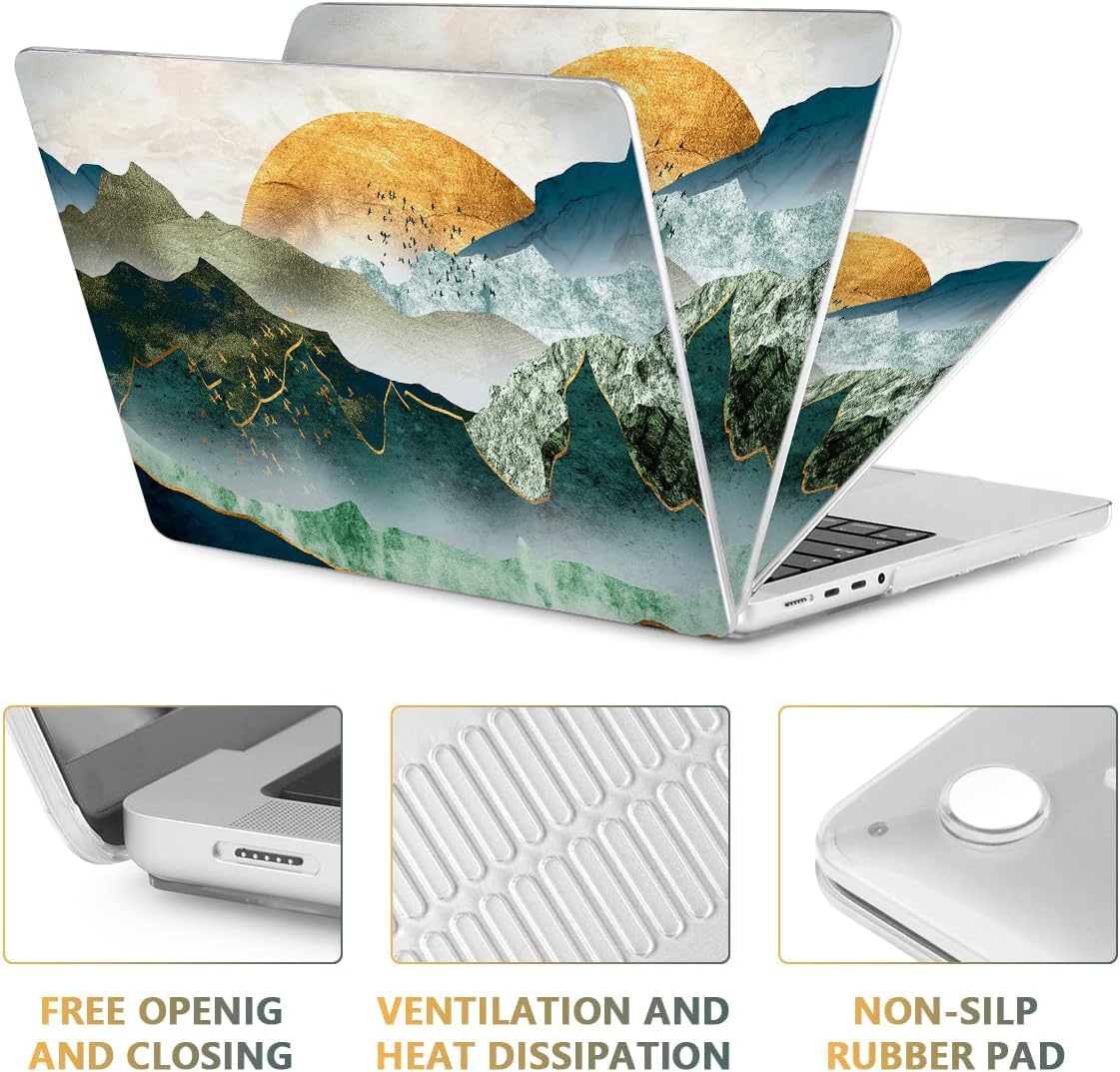 CISSOOK Mountain Case for MacBook Pro 14 inch 2024 2023-2021 Release Model M4 A3112 A3185 A3401/ M3 A2992 A2918/ M2 A2779 /A2442 M1 with Touch ID, Plastic Sunshine Mountain Cover for MacBook Pro 14