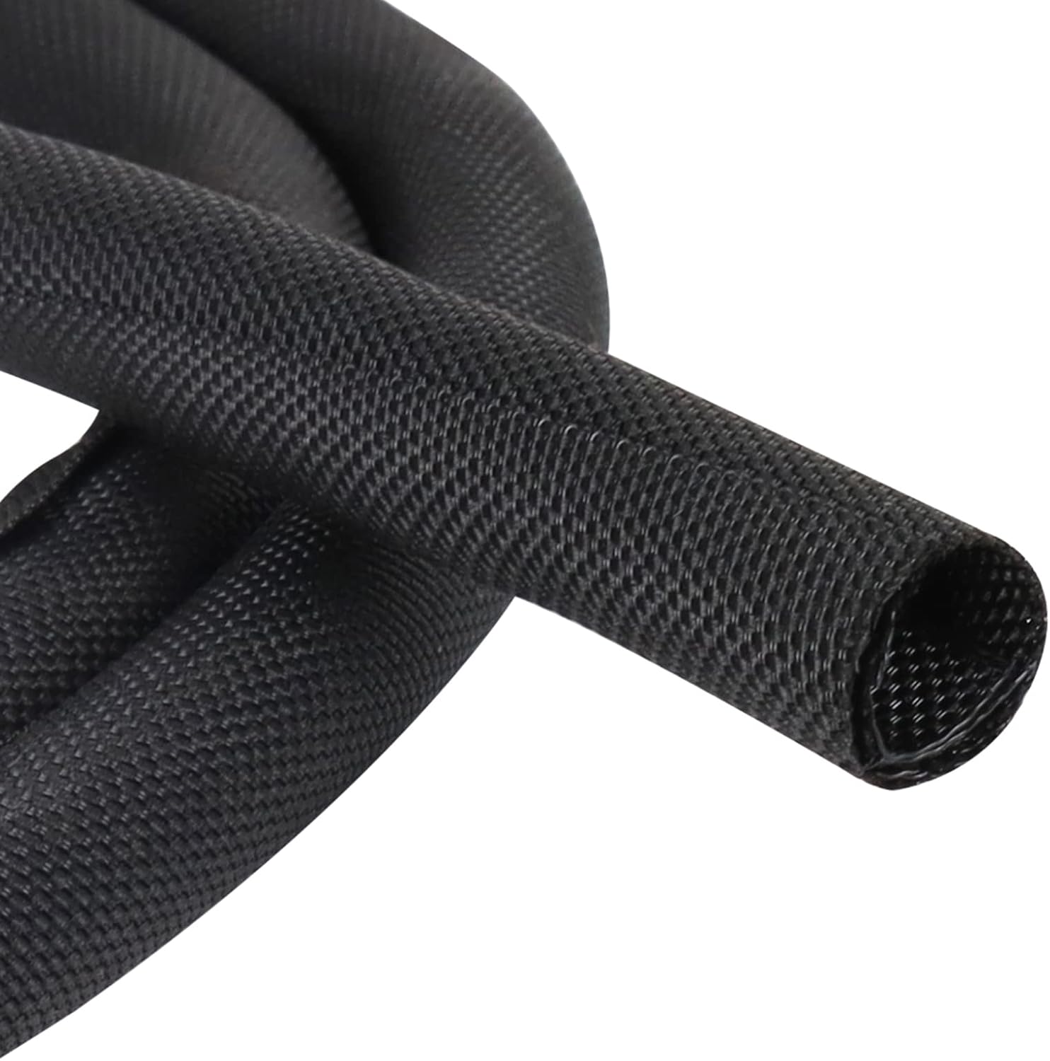 Black Braided Cable Management Sleeves Wire Loom Tubing Cord Protector Self-Wrapping (1/2"-12Feet)