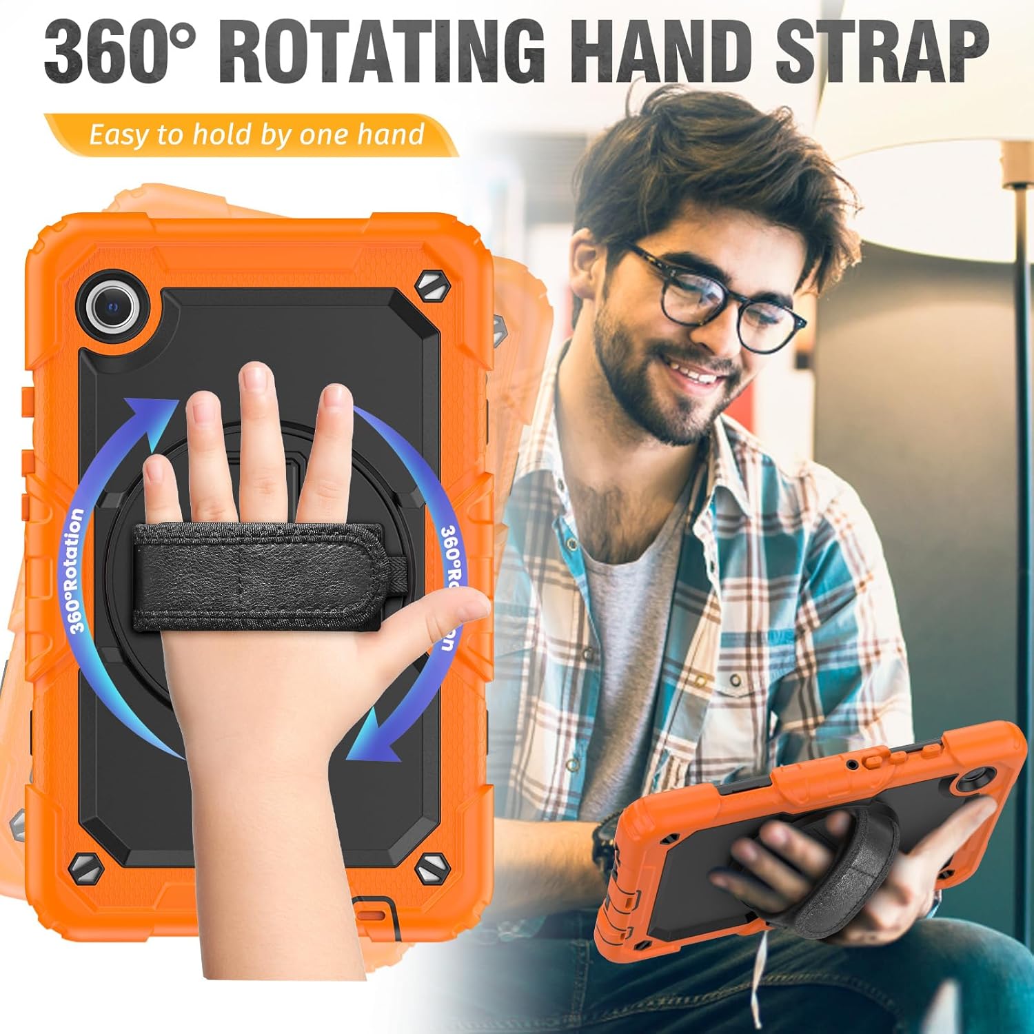 HXCASEAC Case for Samsung Galaxy Tab A7 Lite, Protective with Screen Protector/Hand Strap/Pen Holder, Sturdy A7 Lite Tablet Case, SM-T220 SM-T225 SM-T227, Orange