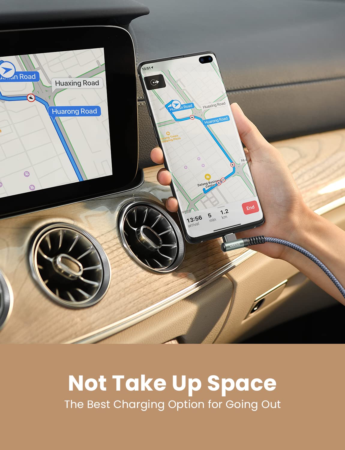 - [Upgraded Exclusive Right Angle Design] This right angle type c charging cable fast charge with an innovative 90 degrees " L " design. It's user-friendly design more convenient and comfortable for playing games, watching videos, reading e-books when you charging. 【 NOTE: The thickness of the compatible mobile phone case charging port is 5.5mm.】